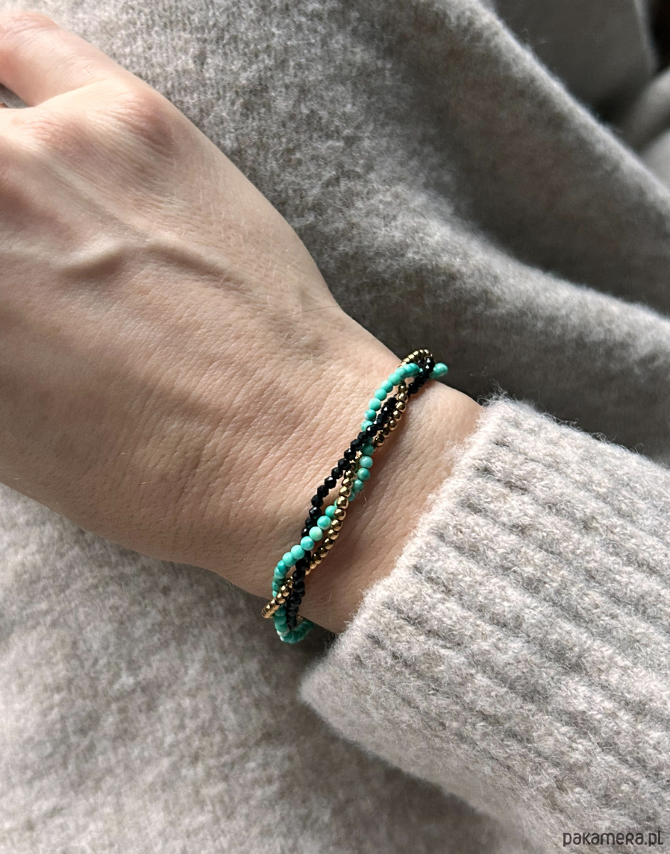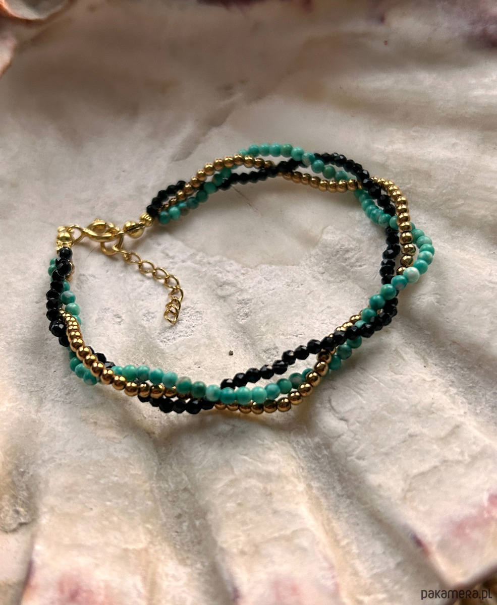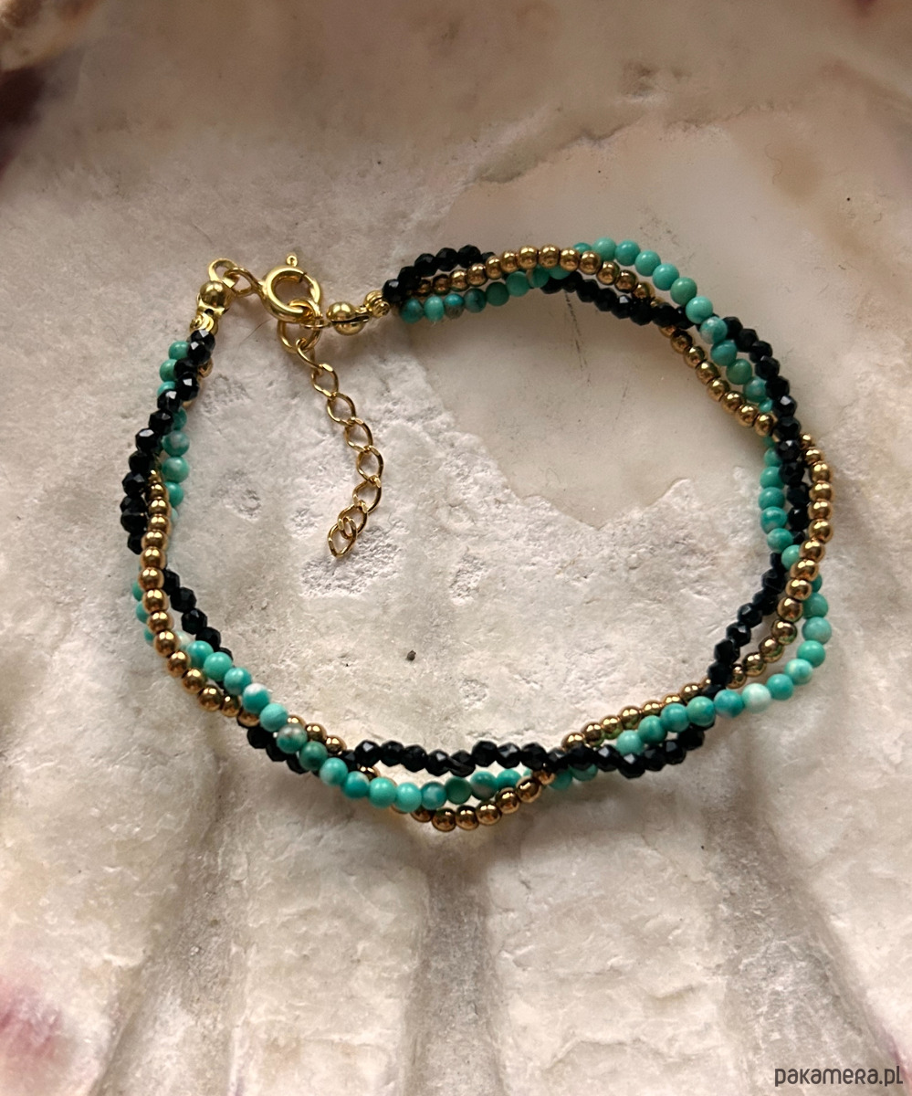 Regulowana bransoletka z Turkusem i Turmalinami i Hematytem.