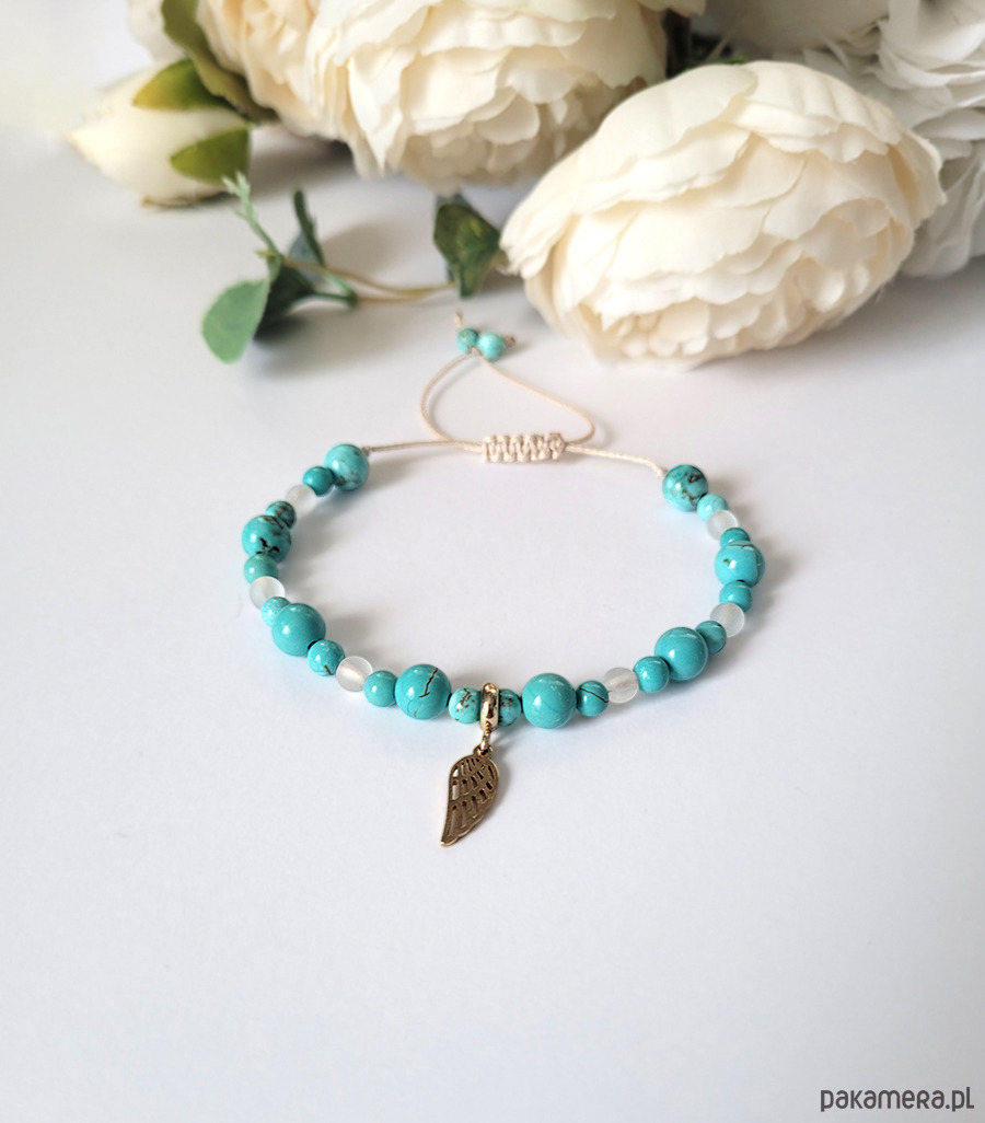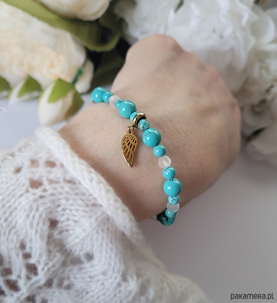 Przepiękna bransoletka zrobiona z kamieni naturalnych: Turkusu i Kryształu górskiego.