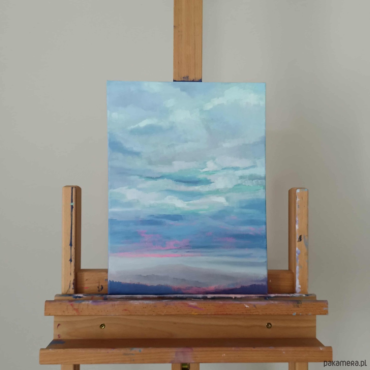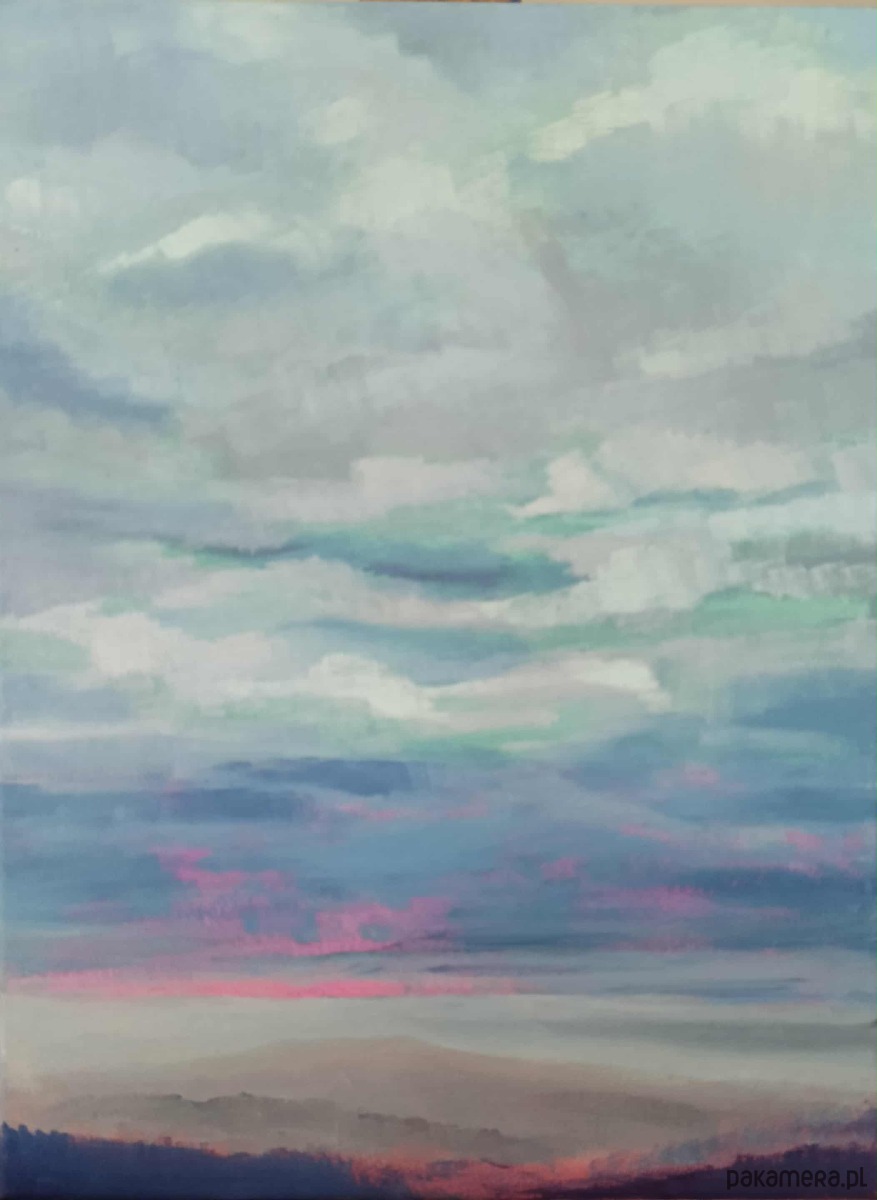 „Spokojne niebo” to oryginalny obraz olejny inspirowany chwilą ciszy i oddechu.