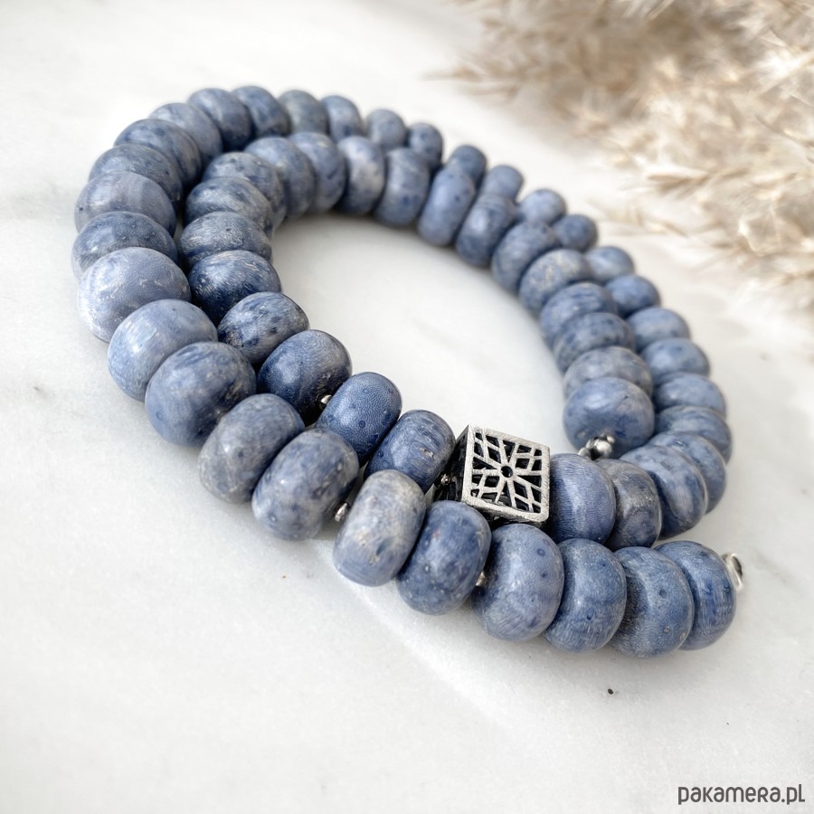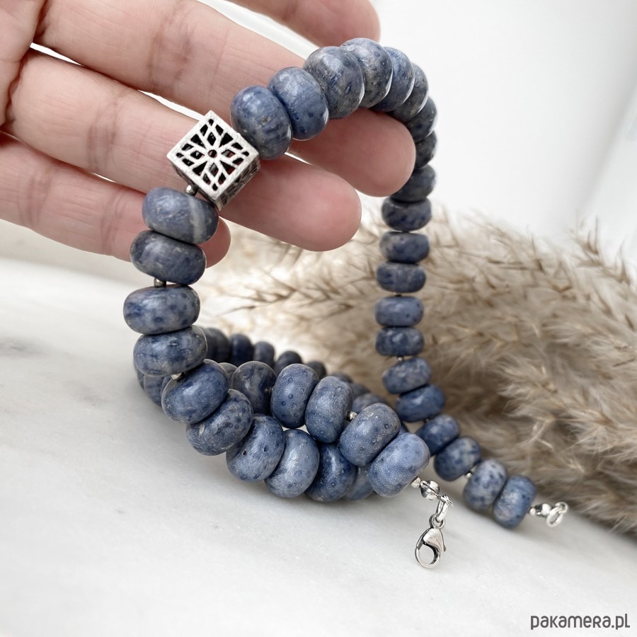 Efektowny naszyjnik wykonany z niebieskiego koralowca oraz srebra próby 925.