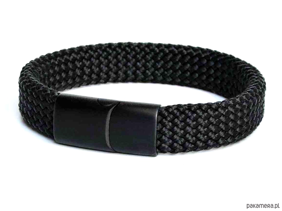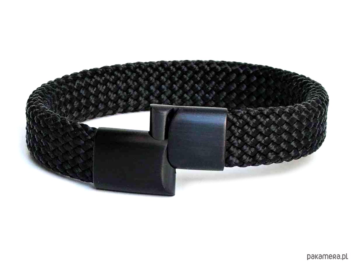Modna bransoleta męska wykonana z usztywnionej liny wspinaczkowej w kolorze czarnym .