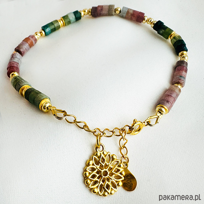 Bransoletka z delikatnych kamieni naturalnych :Agatów w odcieniach zieleni i różu.