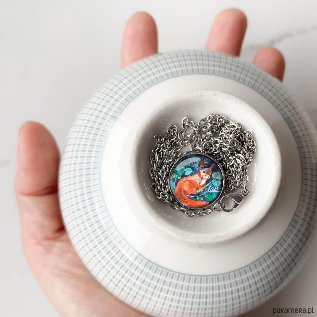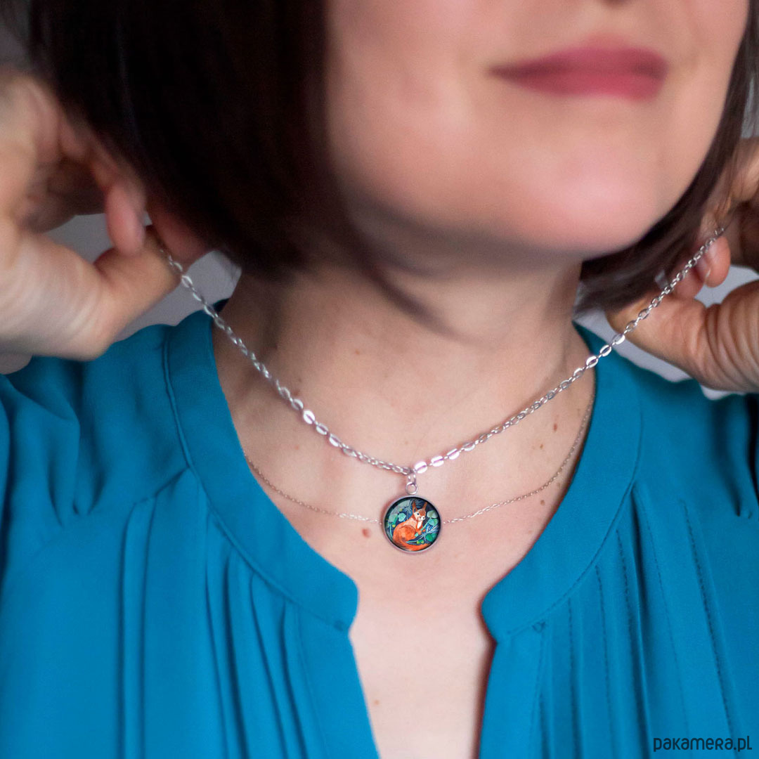 Naszyjnik z medalionem, w którym umieszczona jest kolorowa, autorska ilustracja pod szkiełkiem to elegancki i kobiecy dodatek, który idealnie wpisuje się w duch stylu casual.