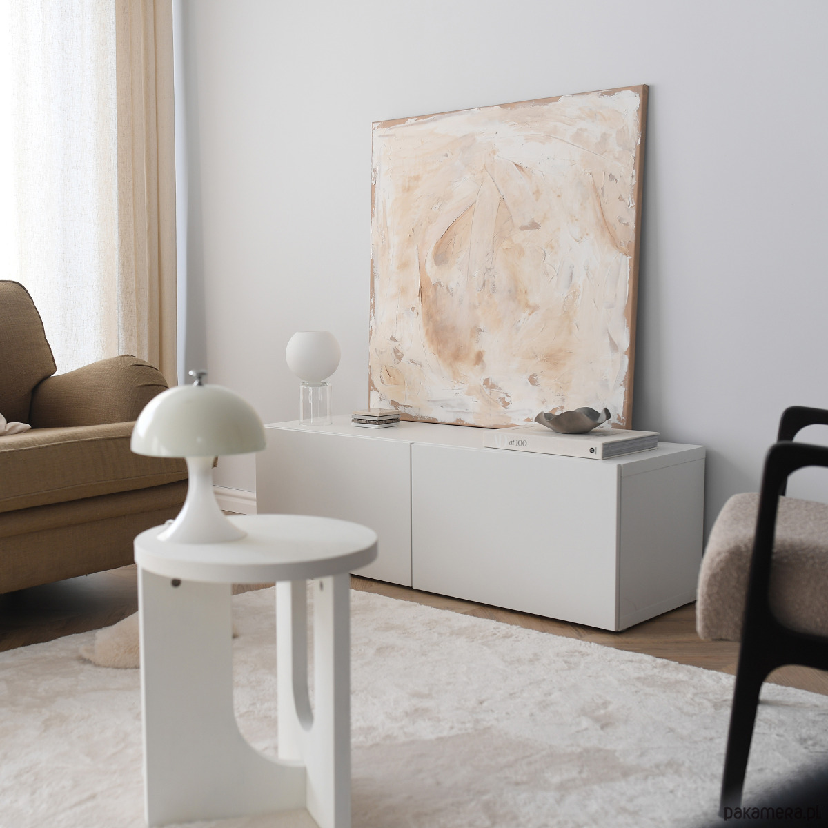 Teksturowana abstrakcja ścienna w delikatnych, neutralnych odcieniach, wykonana przy użyciu gipsu i akrylu na płótnie, zaprojektowana tak, aby wprowadzić spokój, głębię i elegancję do nowoczesnych wnętrz.