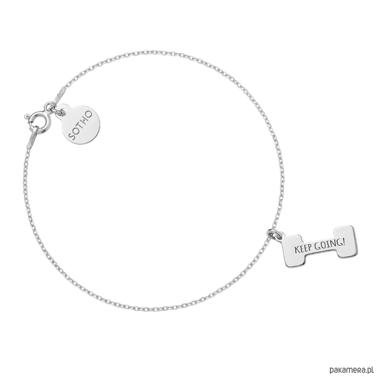 Bransoletka łańcuszkowa zdobiona ciężarkiem i zawieszką z logo marki. Całość wykonana ze srebra 925.