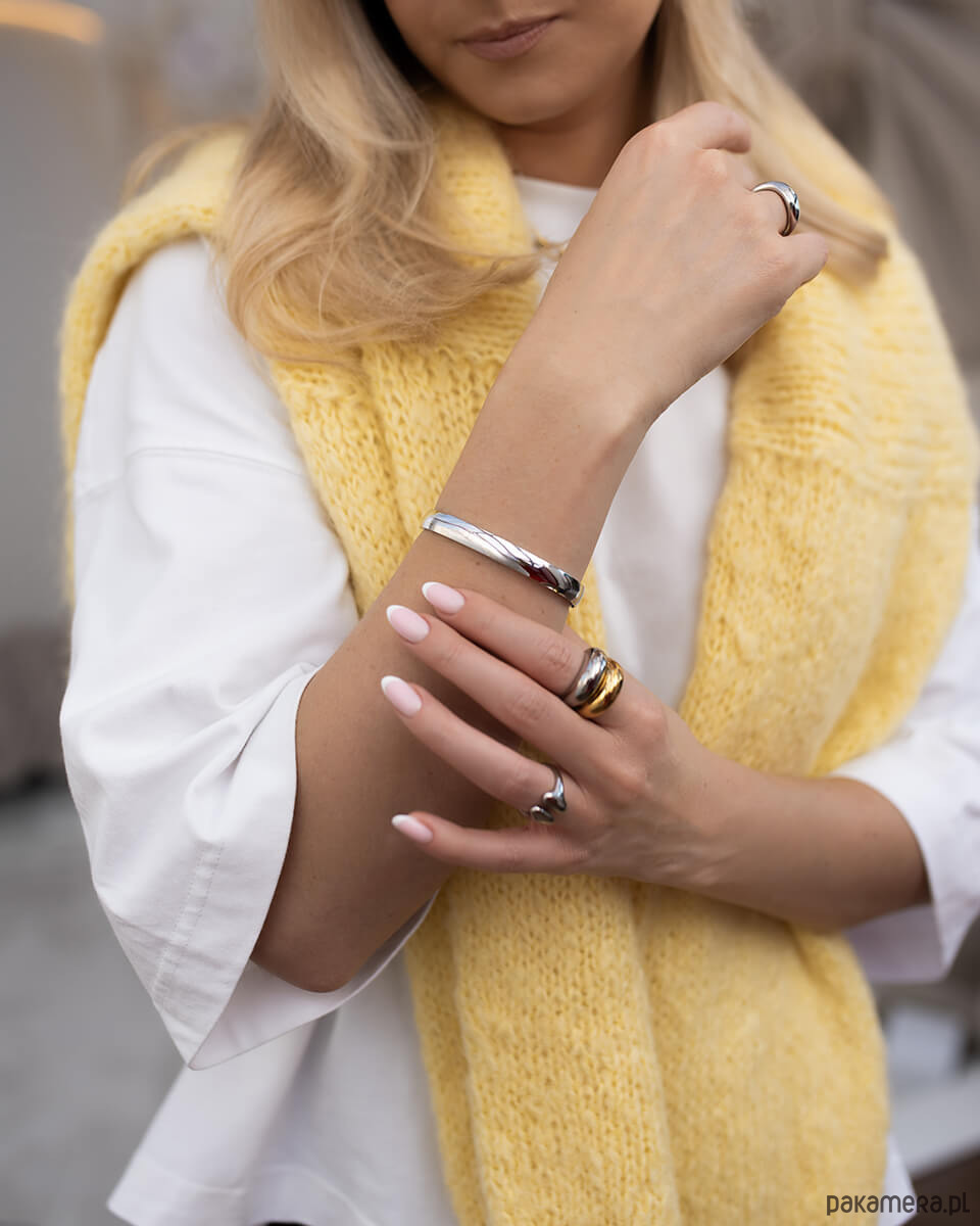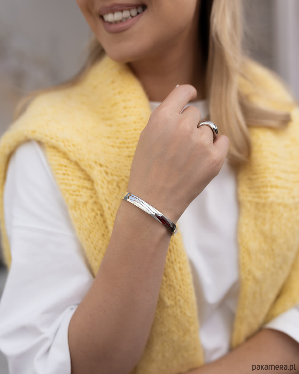 Szukasz biżuterii, która wygląda luksusowo, a jednocześnie jest odporna na codzienne użytkowanie? Bransoletka mankietowa Paraiso Noire to wybór, który daje Ci styl, komfort i trwałość - bez kompromisów.Ten model to masywniejsza, srebrna bransoletka. Szerokość 3 cm sprawia, że jest wyrazista, ale nie przesadzona. Średnica wewnętrzna 6,2 cm pasuje na większość kobiecych nadgarstków. Jej delikatnie wypukła, błyszcząca powierzchnia pięknie odbija światło, dodając klasy nawet najprostszej stylizacji.
