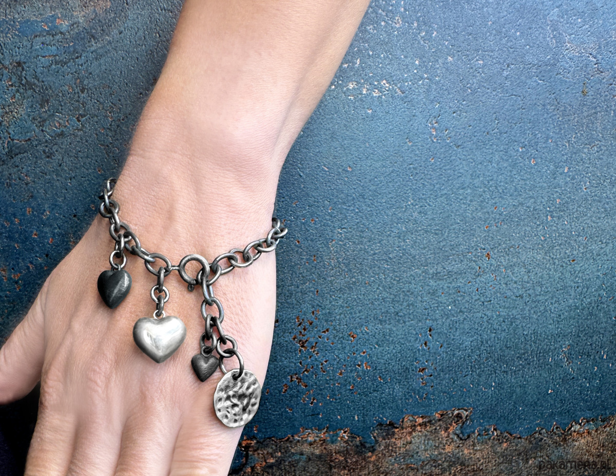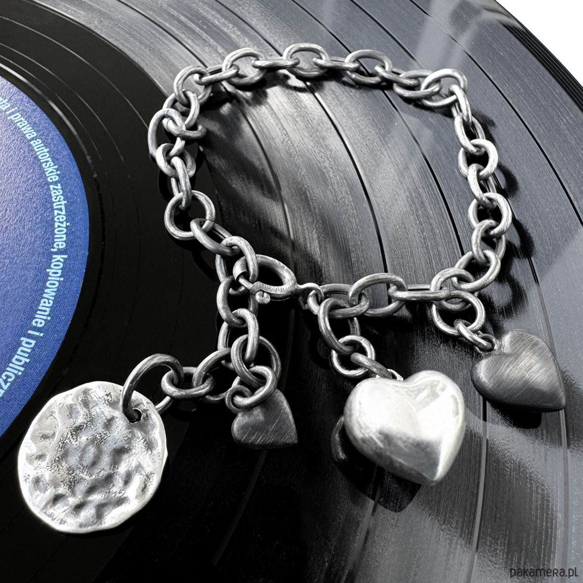 Bransoletka wykonana z oksydowanego srebra próby 925. Jej podstawę tworzy srebrny łańcuch z ogniwami 7mm x 9mm. Świetnie komponuje się z większością kreacji zarówno eleganckich jak i casual. Idealny wybór, jeśli chcesz podkreślić swój charakter i drapieżną osobowość ;)