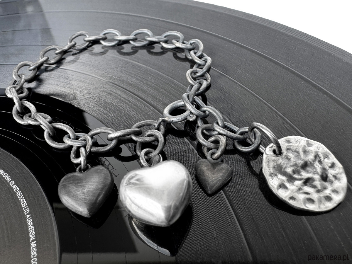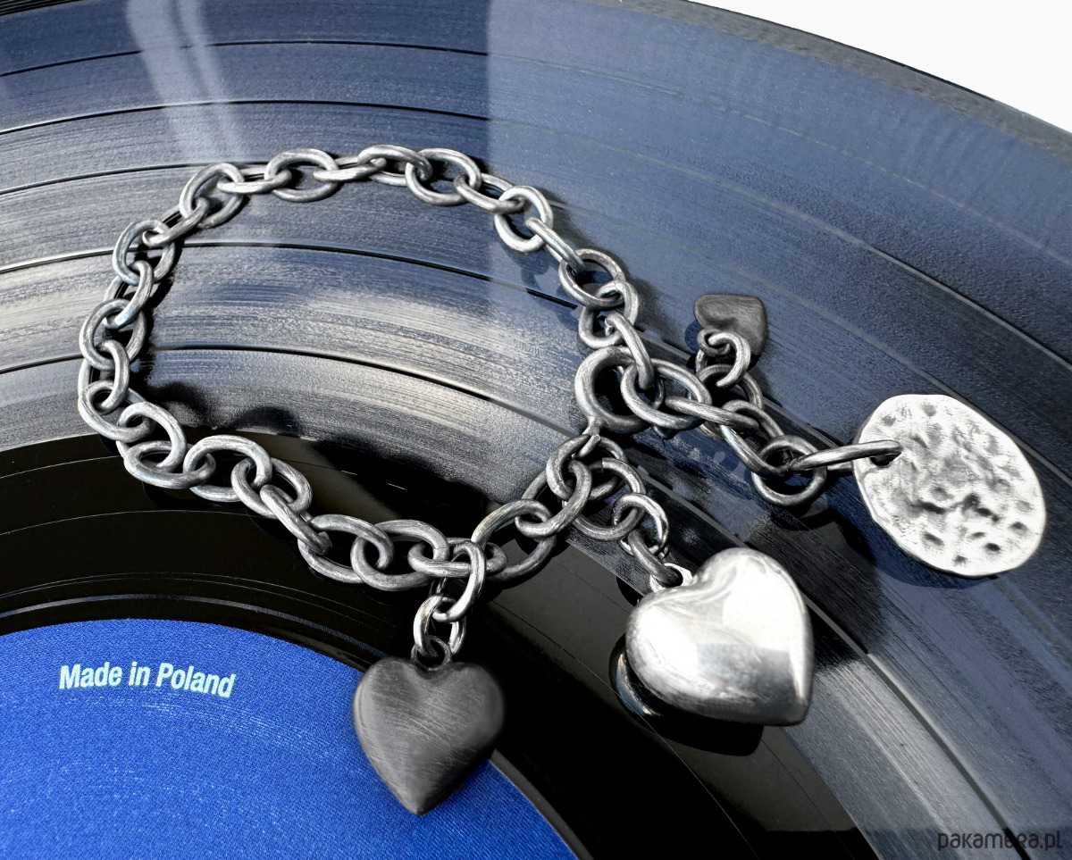Srebrna bransoletka Rockstar z trzema Serduszkami, black and white