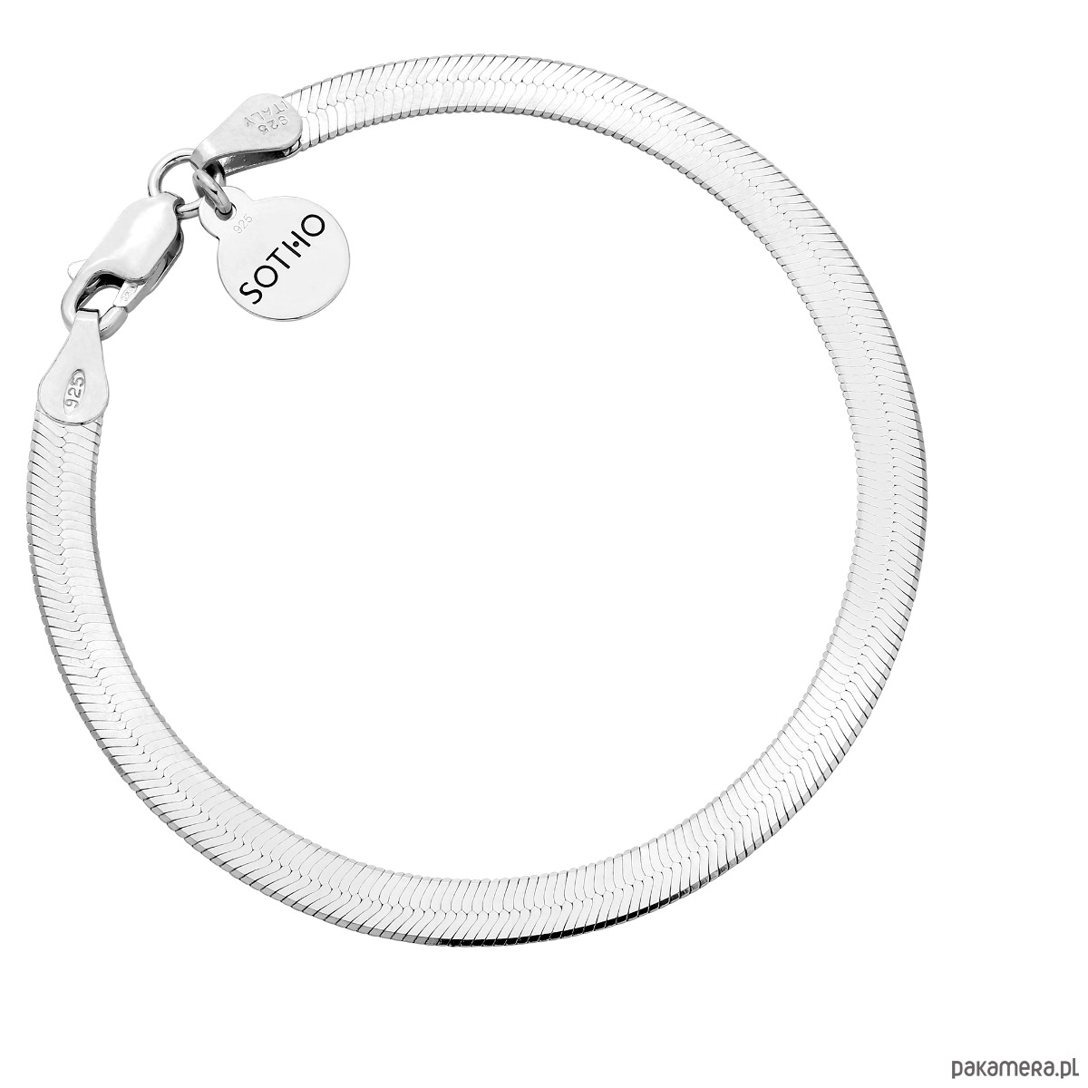 Srebrna bransoletka snake z zawieszką z logo marki. Całość wykonana ze srebra 925.