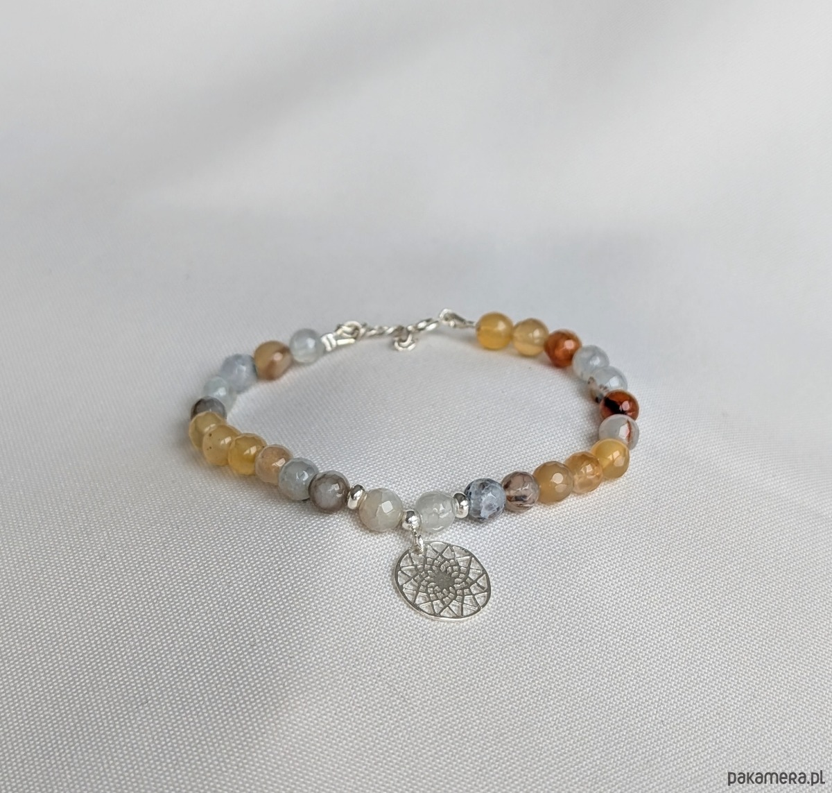 Srebrna bransoletka z agatami i mandalą