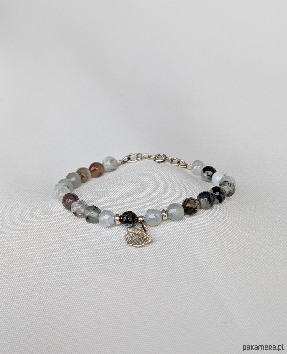 Srebrna bransoletka z agatami i miłorzębem
