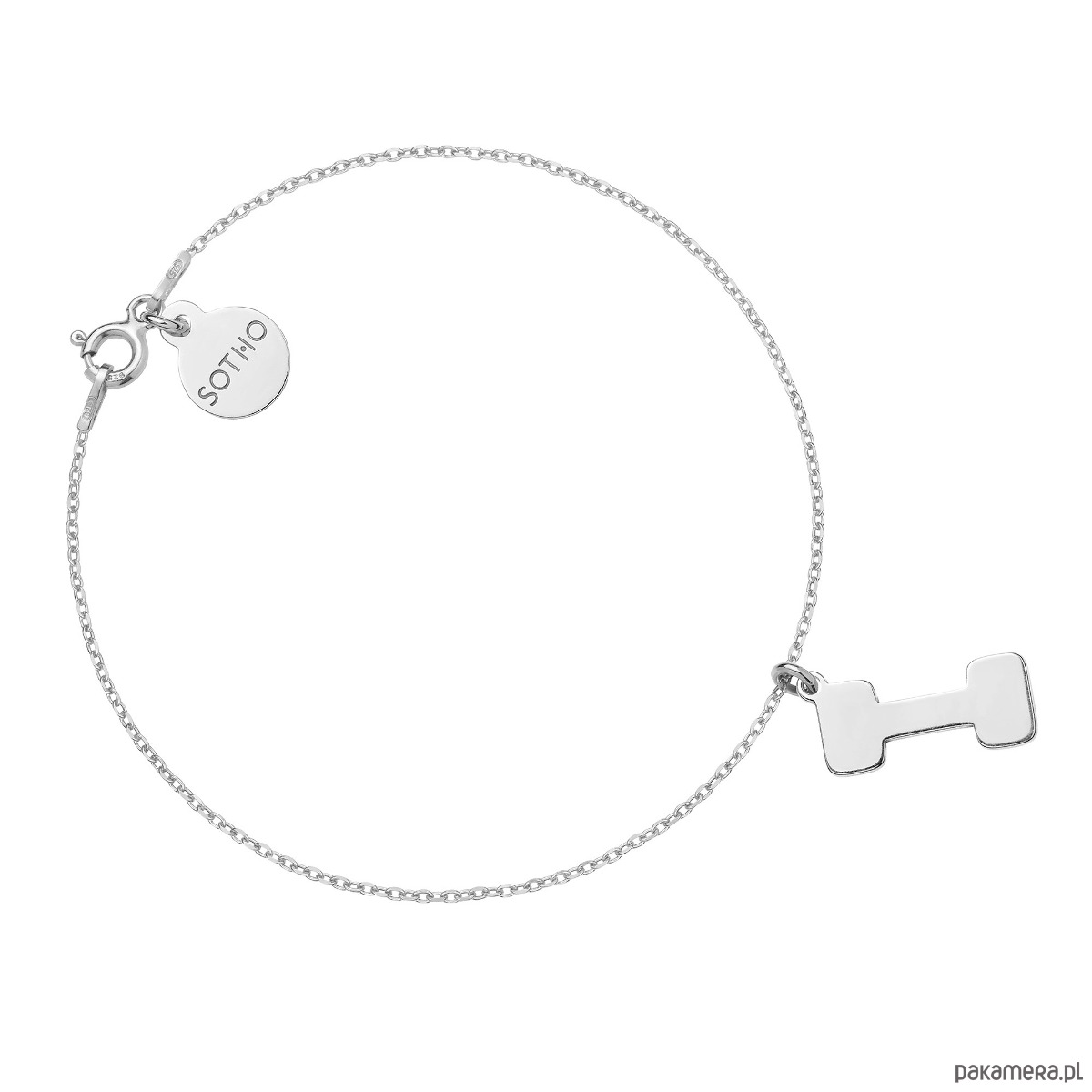 Srebrna bransoletka łańcuszkowa zdobiona ciężarkiem i zawieszką z logo marki. Całość wykonana ze srebra 925.