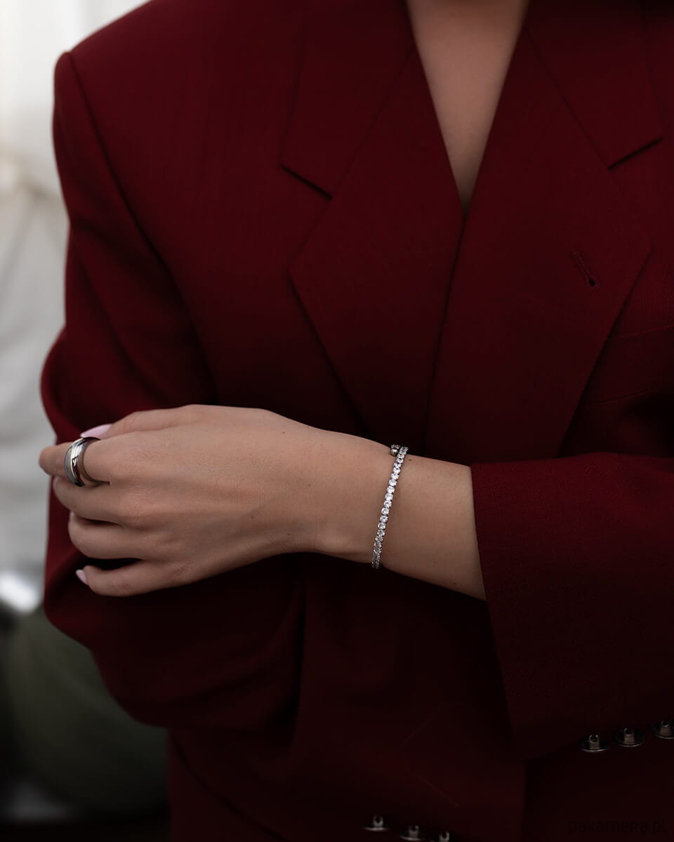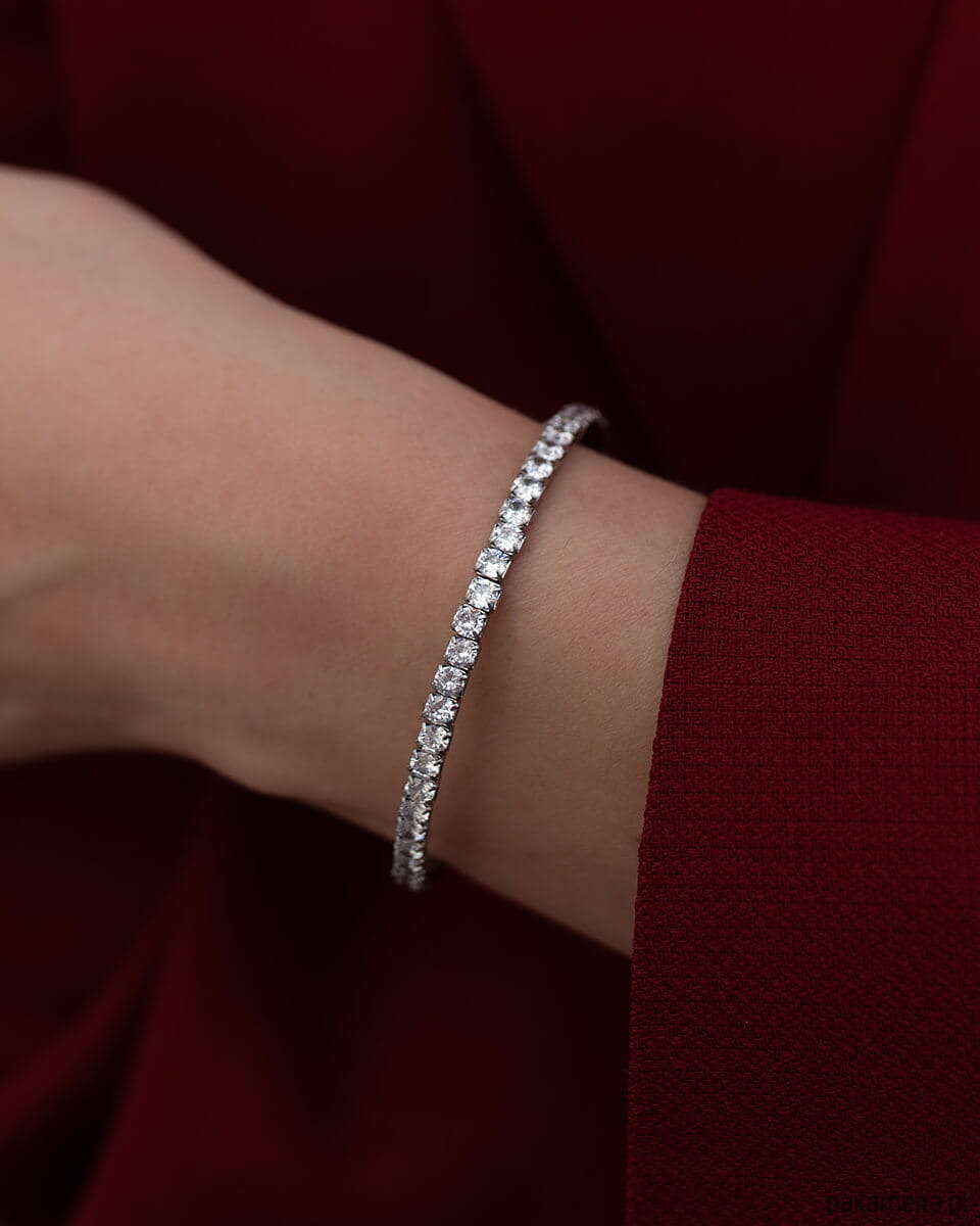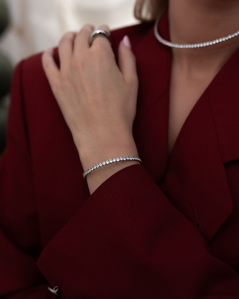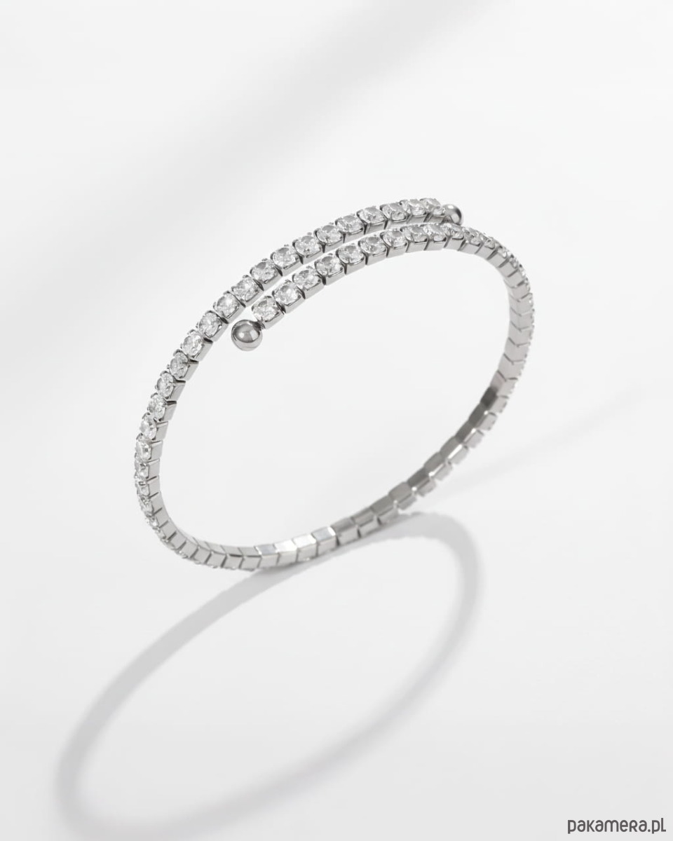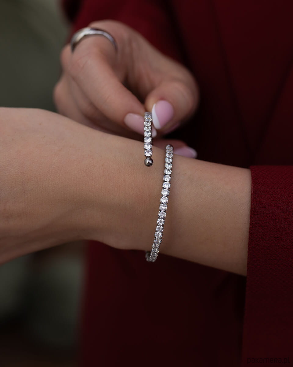 Ta elastyczna bransoletka o regulowanym rozmiarze i wewnętrznej średnicy 5,2 cm to błyszczący must-have dla każdej kobiety kochającej delikatną, a jednocześnie efektowną biżuterię. Jej podwójny pas cyrkonii pięknie odbija światło, sprawiając, że nadgarstek wygląda smukło i kobieco. Bransoletka waży zaledwie 6,4 g, dzięki czemu jest bardzo komfortowa w noszeniu. Nie uczula, nie traci blasku i można ją nosić nawet podczas kontaktu z wodą. To także doskonały wybór na prezent dla kobiet, które cenią elegancką i ponadczasową biżuterię.