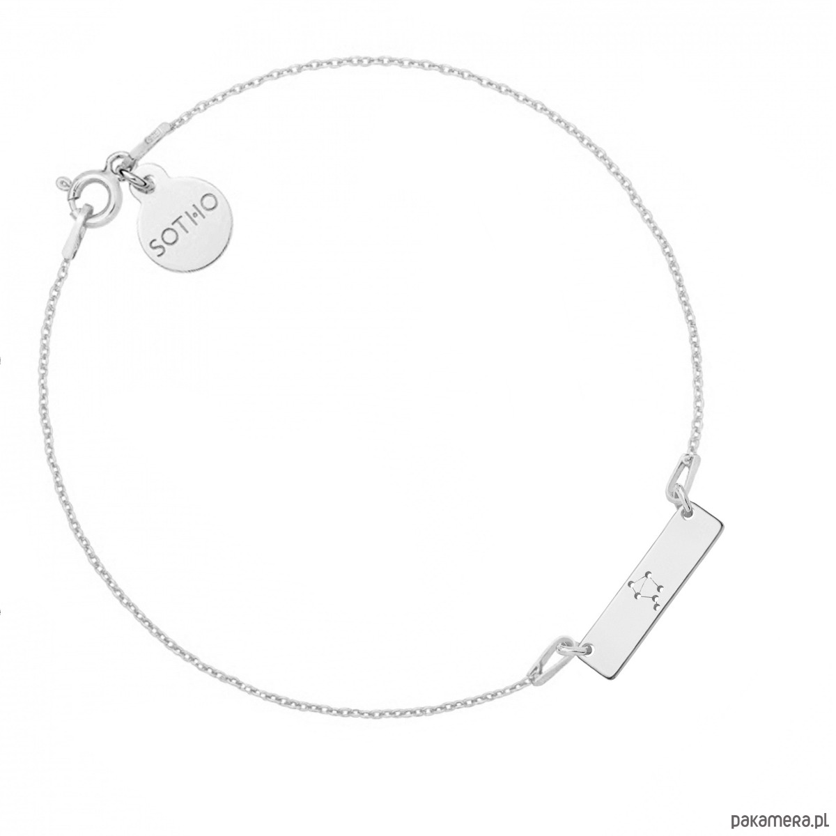Srebrna bransoletka łańcuszkowa zdobiona konstelacją zodiakalną Wagi i zawieszką z logo marki. Całość wykonana ze srebra 925.