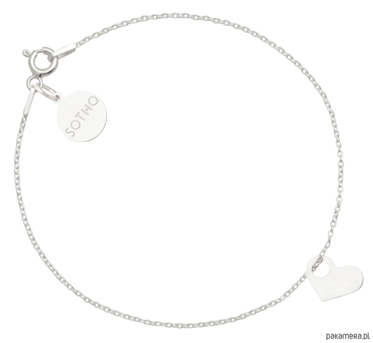 Srebrna bransoletka łańcuszkowa zdobiona serduszkiem i zawieszką z logo marki. Całość wykonana ze srebra 925.