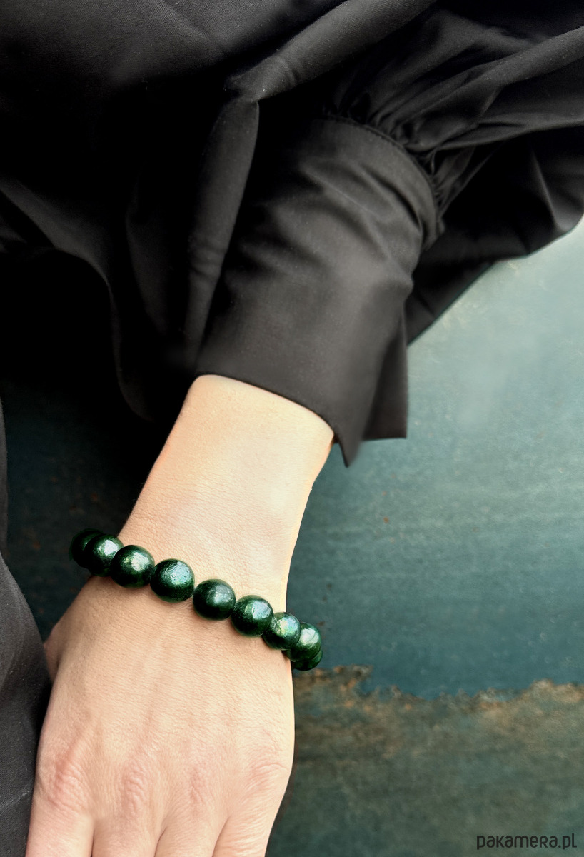 Srebrna bransoletka z perłami w kolorze wiktoriańskiej, butelkowej zieleni