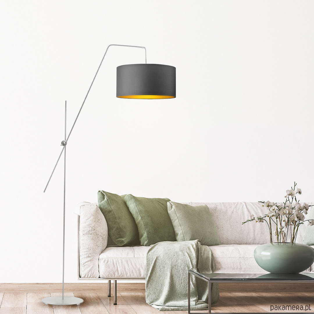 Lampa stojąca BILBAO GOLD to idealna propozycja dla osób ceniących sobie nowoczesność. Ruchomy przegub tego oświetlenia, sprawia, że lampa ta tworzy konstrukcję dzięki, której wyróżnia się spośród innych modeli. Cecha ta pozwala również precyzyjnie ukierunkować łunę wydobywającego się z lampy światła. Kolekcję GOLD charakteryzują abażury ze złotym środkiem w pięciu opcjach kolorystycznych. Biały wariant dysponuje wnętrzem z powierzchnią lustrzaną natomiast czarny, zielony, szary oraz granatowy odpowiednik z matową.