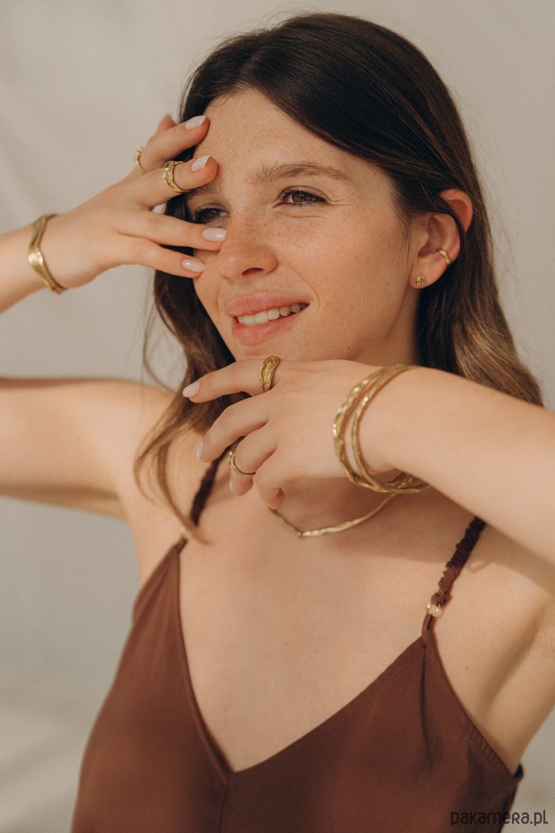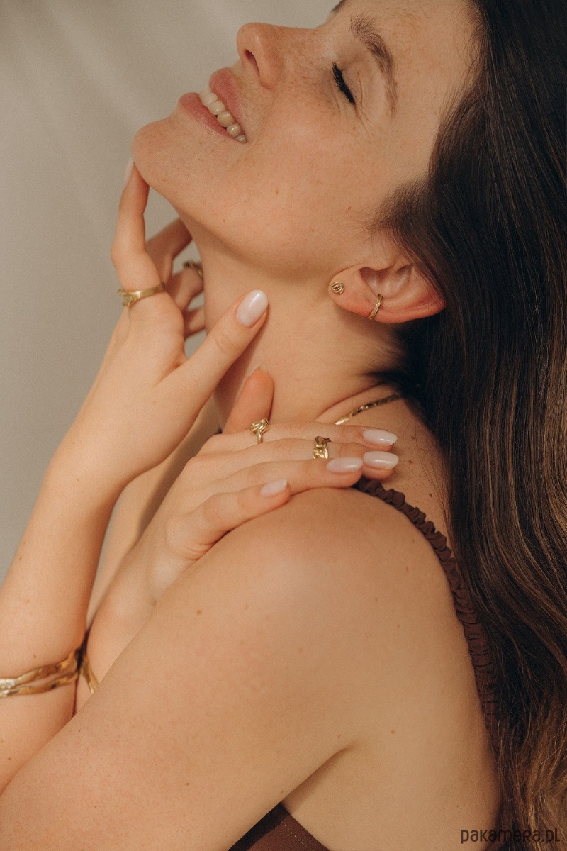 Obecność to subtelna, nieoczywista forma dla kobiet, które cenią biżuterię z charakterem. Sprawdza się zarówno w bardziej eleganckich zestawieniach, jak i w codziennych stylizacjach — od marynarki po prosty t-shirt i jeansy. Nakładana na ucho, pozostaje komfortowa w noszeniu i nie wymaga przekłuwania.