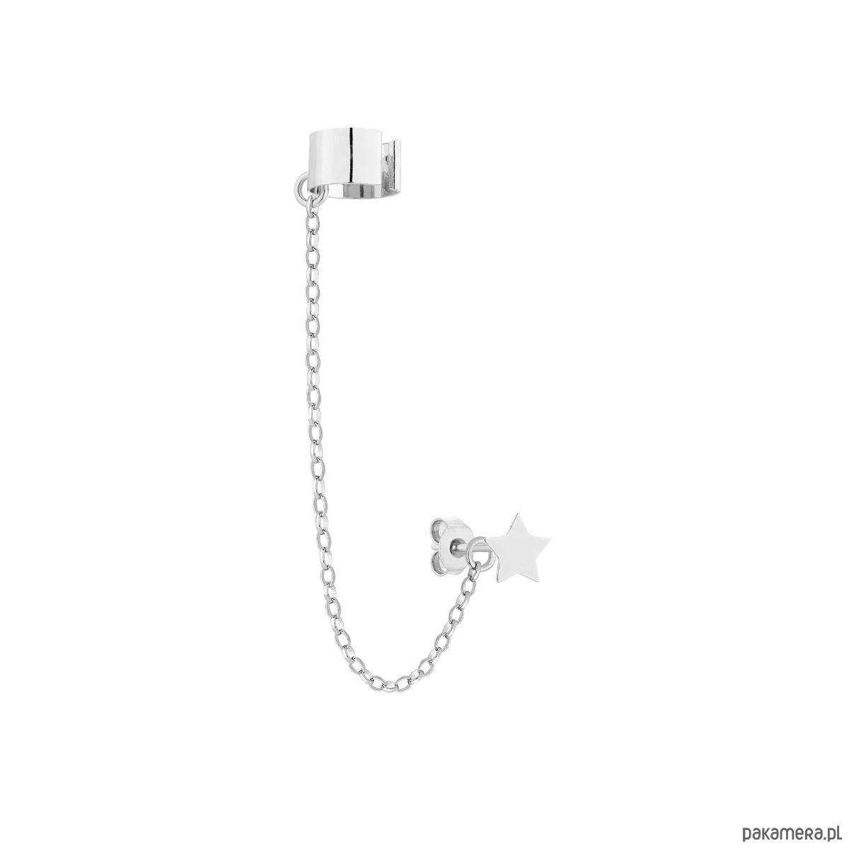 Srebrna nausznica z łańcuszkiem i gwiazdką w całości wykonana ze srebra 925.