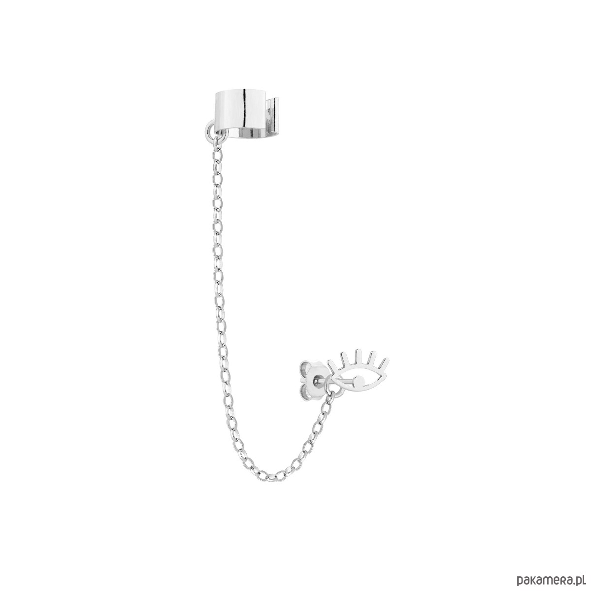 Srebrna nausznica z łańcuszkiem i okiem w całości wykonana ze srebra 925.