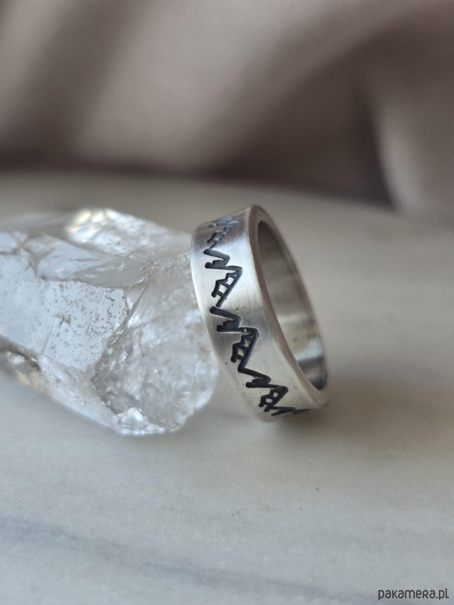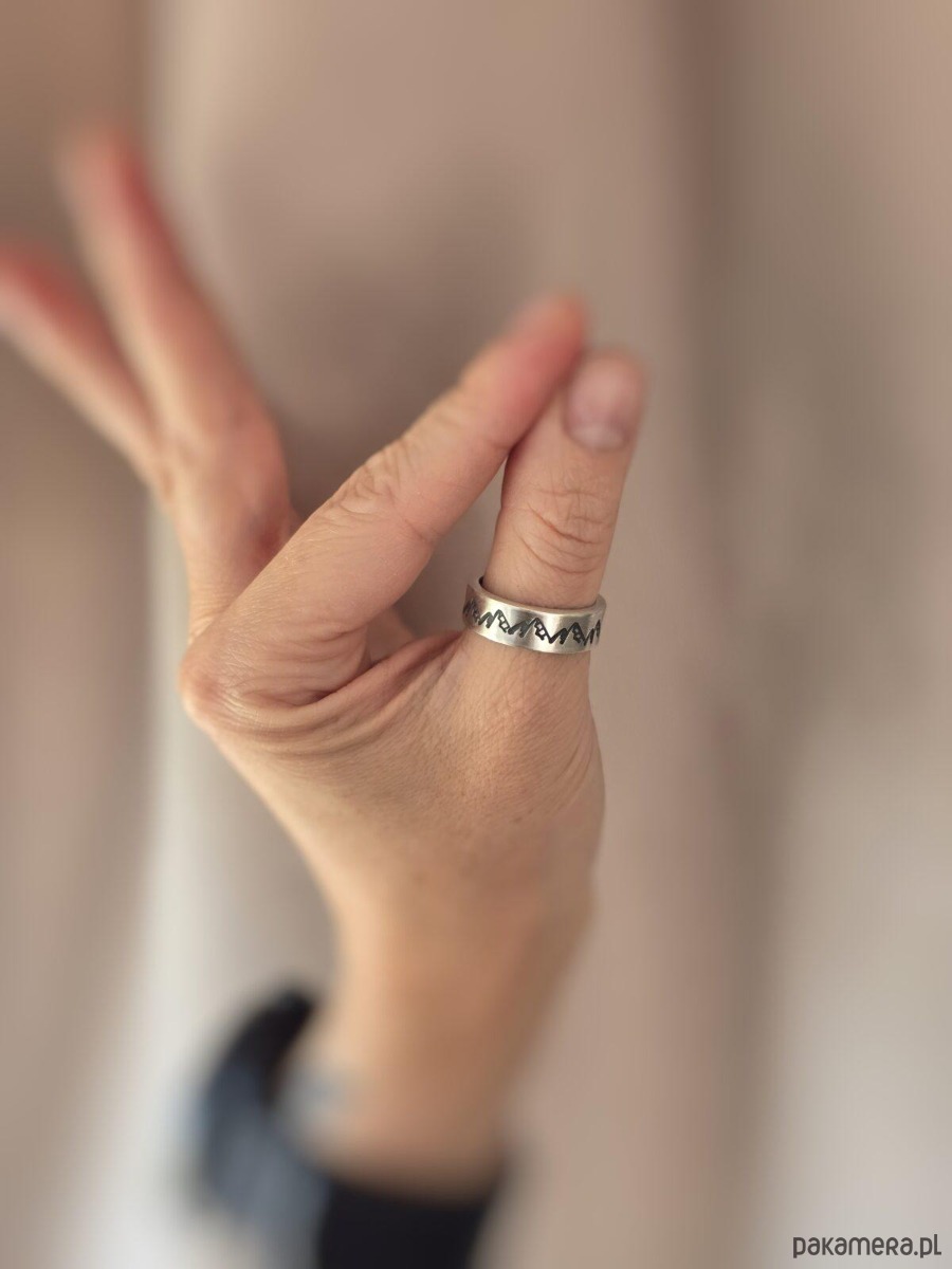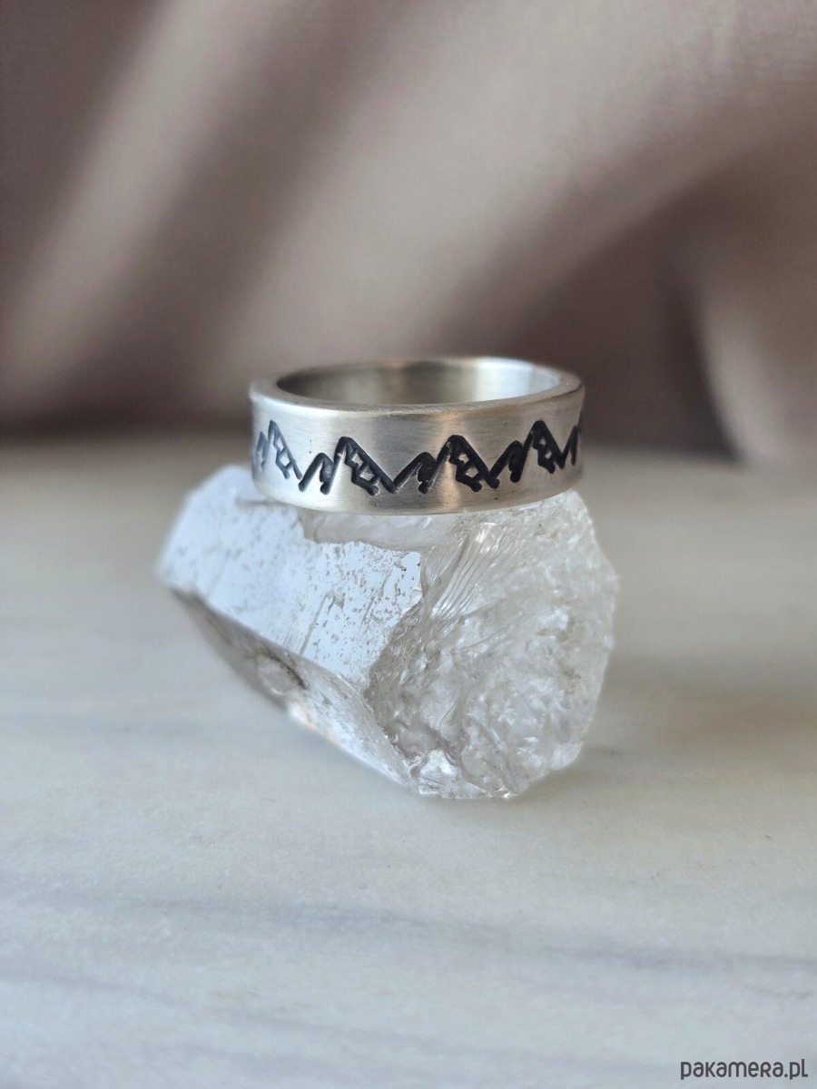 Srebrna obrączka z górami