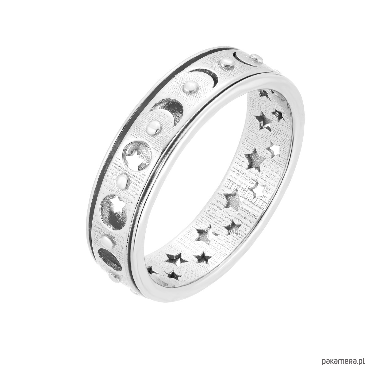 Srebrna obrotowa obrączka z fazami księżyca i gwiazdami wykonana ze srebra 925.