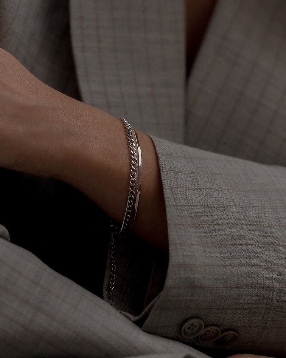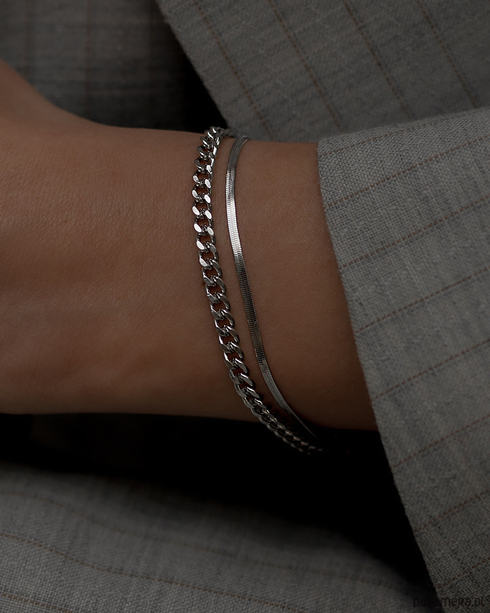 Piękna srebrna podwójna bransoletka ze stali chirurgicznej 316L.
