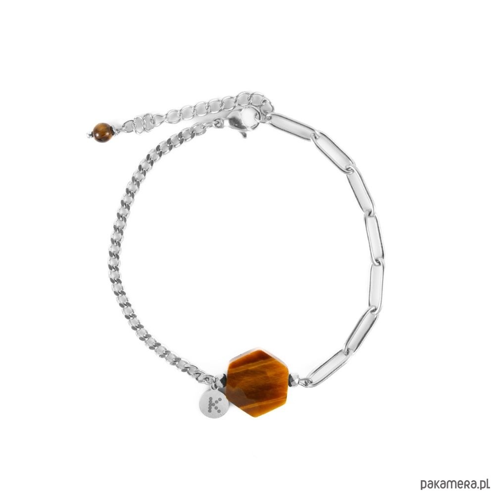 Podkreśl swój styl naszą bestsellerową bransoletką z Tygrysiego Oka, dostępną w dwóch wersjach – złotej i srebrnej. Ten wyjątkowy model łączy w sobie elegancję, nowoczesność i naturalne piękno kamieni, tworząc kompozycję, która przyciąga spojrzenia i doskonale dopełnia każdą stylizację. Centralnym elementem bransoletki jest naturalne Tygrysie Oko – kamień odwagi, determinacji i ochrony. Jego charakterystyczne, złocisto-brązowe refleksy hipnotyzują i przypominają o wewnętrznej sile, stabilności oraz pewności siebie. Tygrysie Oko dodaje odwagi w podejmowaniu decyzji, wzmacnia wolę działania i pomaga zachować spokój nawet w trudnych chwilach. To kamień, który symbolizuje siłę, niezależność i energię płynącą z natury. W połączeniu ze złotym lub srebrnym wykończeniem tworzy biżuterię o wyjątkowym charakterze – pełną ciepła, harmonii i ponadczasowego uroku. Każda bransoletka wykonywana jest ręcznie z najwyższej jakości stali szlachetnej, odpornej na codzienne użytkowanie. To nie tylko ozdoba, ale talizman pewności siebie i wewnętrznej mocy, który przypomina, że prawdziwe piękno tkwi w sile, spokoju i autentyczności.
