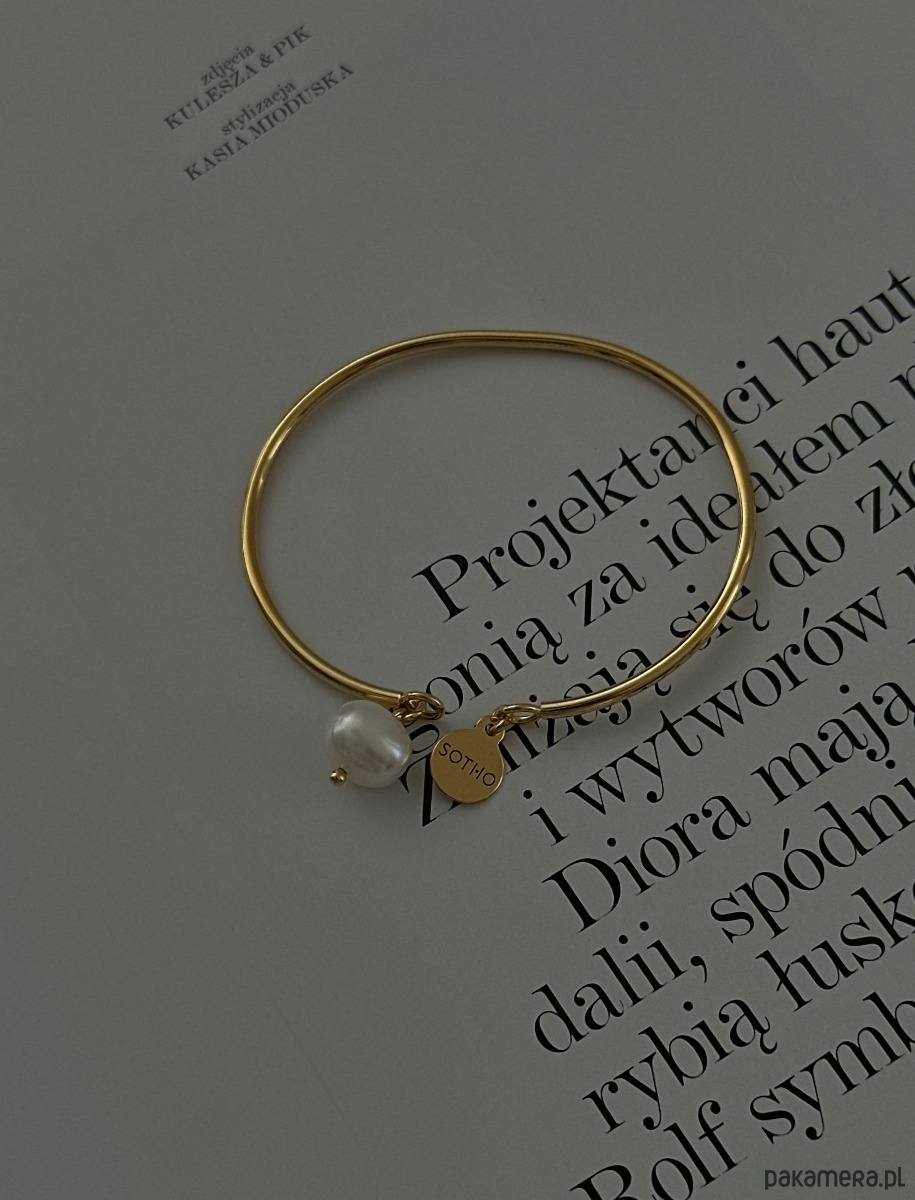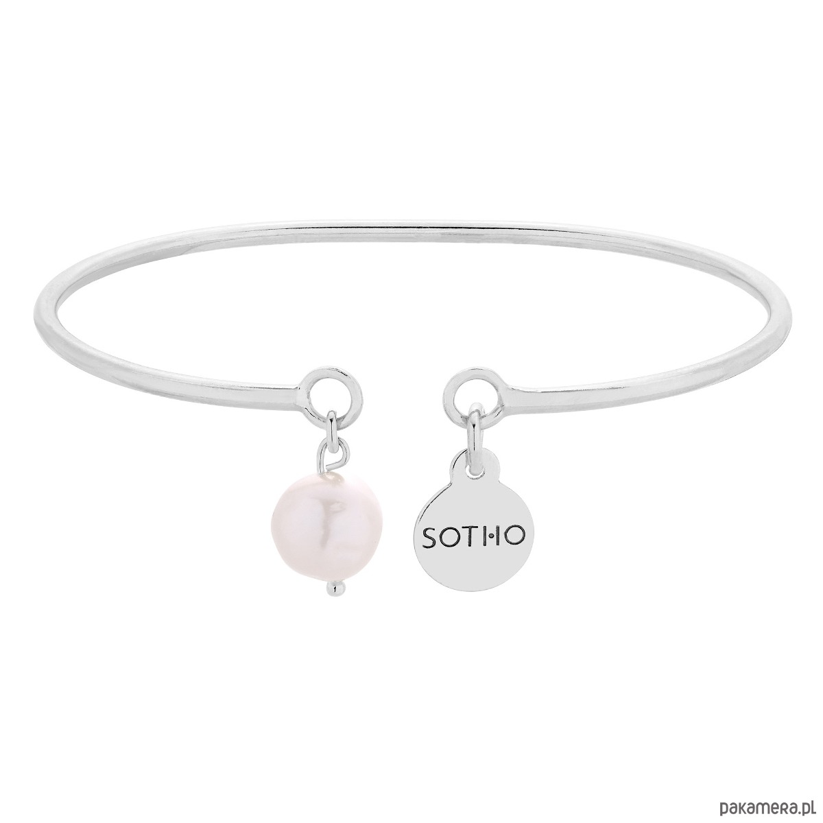 Srebrna bransoletka zdobiona naturalną, nieregularną perłą i zawieszką z logo marki. Całość wykonana ze srebra 925.