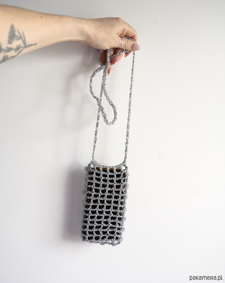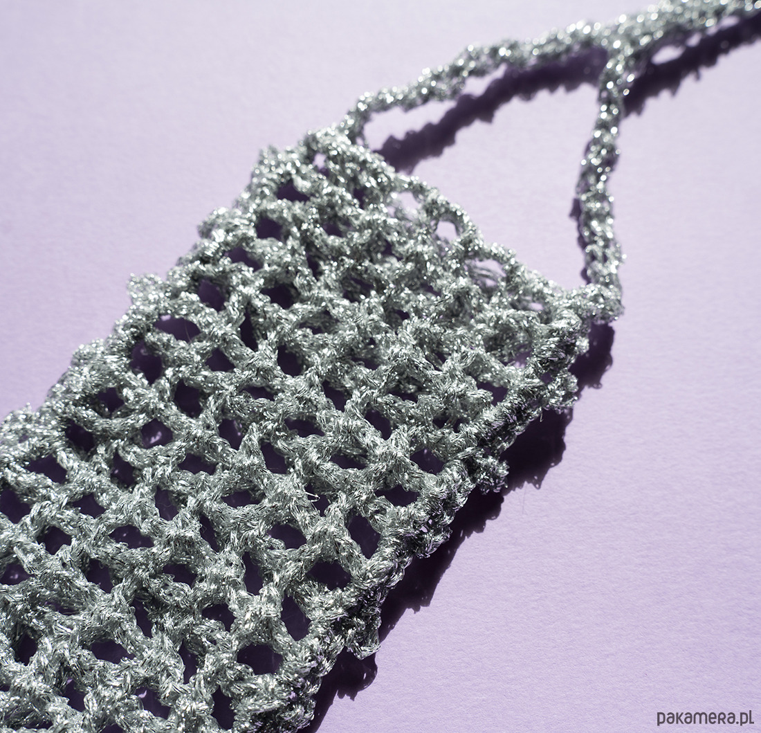 Minimalistyczna, a zarazem przyciągająca wzrok torebka/etui typu "siatka" wykonana z połyskującej, srebrnej przędzy, świetnie wpisuje się w najnowsze trendy. Metaliczny blask i modny, ażurowy splot sprawiają, że torebka jest nie tylko praktycznym gadżetem, ale przede wszystkim oryginalnym dodatkiem do Twojej stylizacji. Idealnie sprawdzi się na letnich festiwalach, wieczornych wyjściach ze znajomymi, spacerach z psem, czy podczas szybkich zakupów, kiedy potrzebujesz mieć wolne ręce.