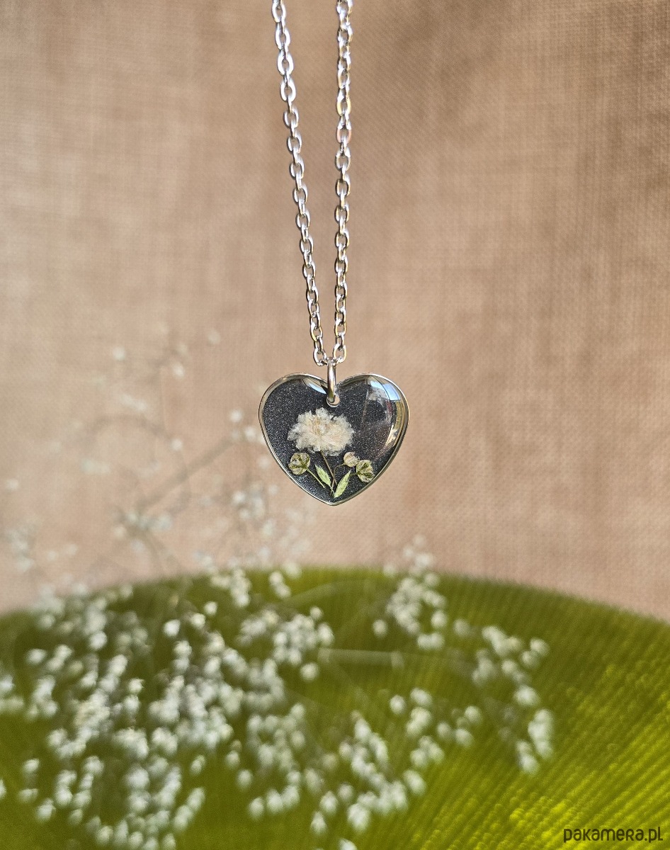 Srebrna zawieszka z kwiatami serce serduszko naturalna czarna