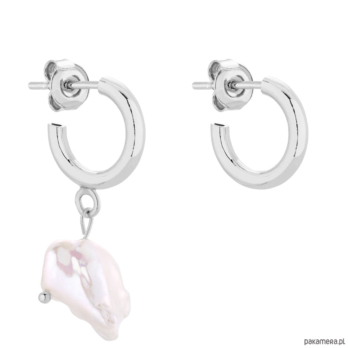 Grube, półokrągłe, srebrne kolczyki asymetryczne z naturalną perłą. Całość wykonana ze srebra 925. Perła jest płaska, nieregularna, unikatowa i może różnić się od tej na zdjęciu.