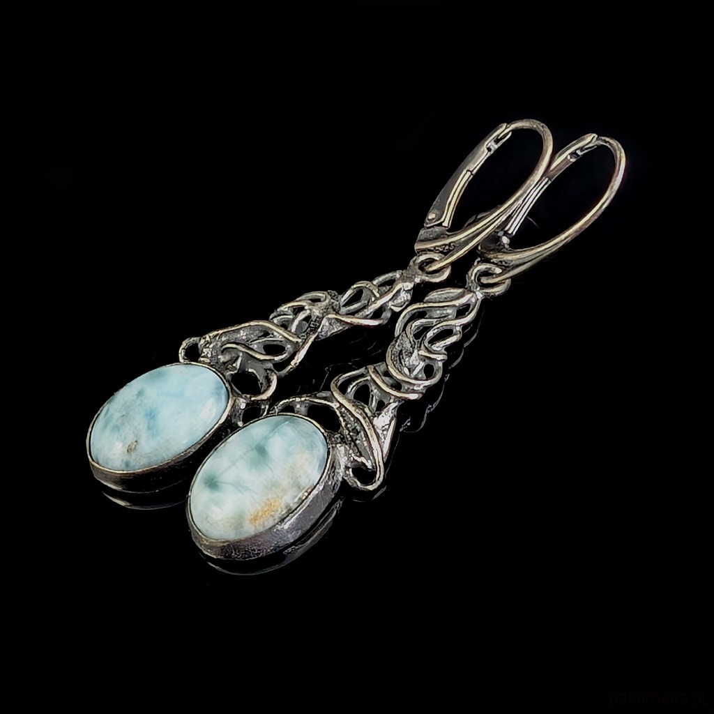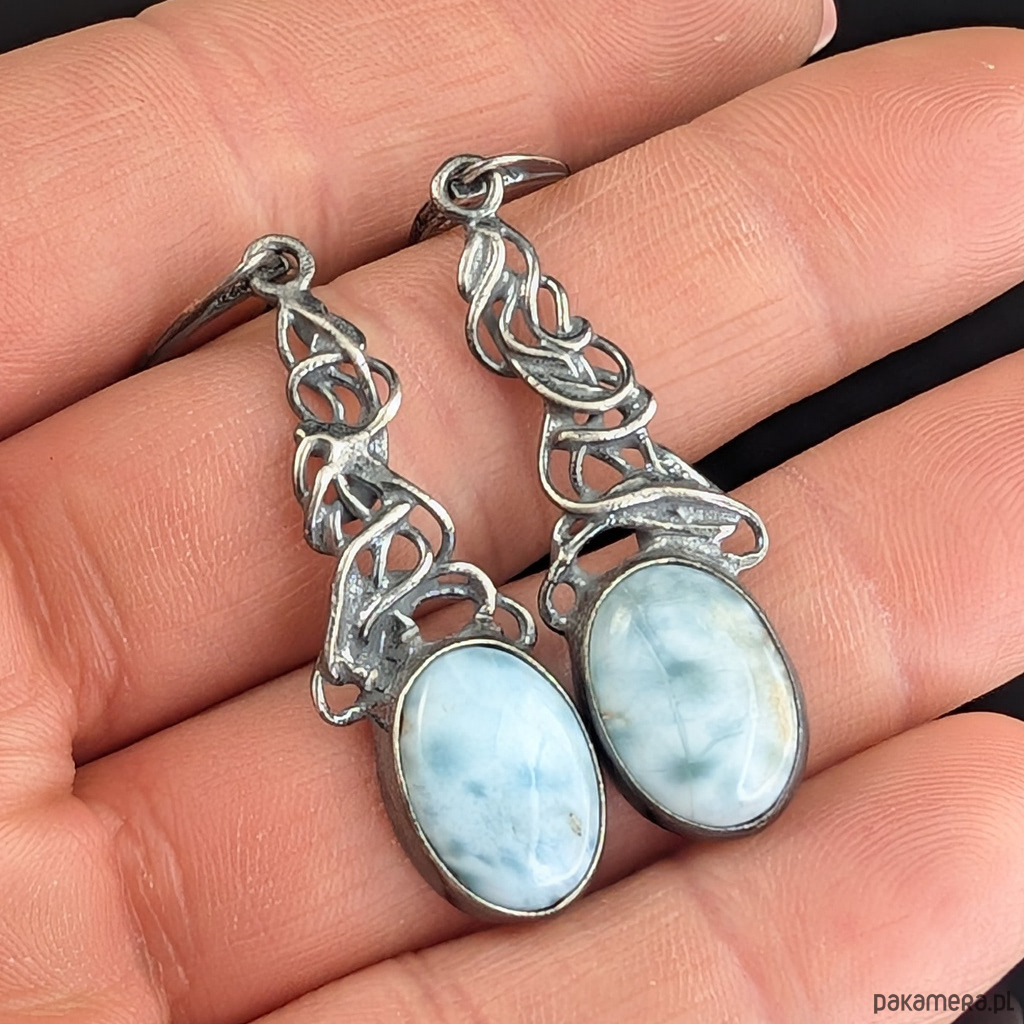 Kolczyki wykonane z oksydowanego srebra próby 925 oraz pięknych, naturalnych larimaró.