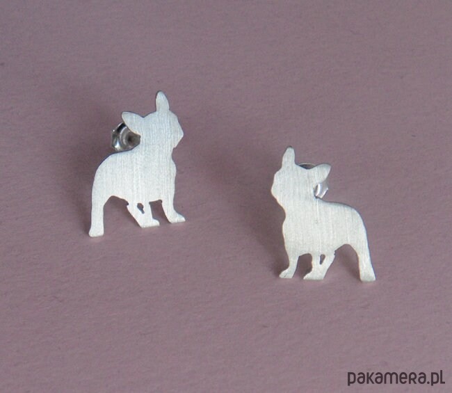 Srebrne kolczyki buldogi francuskie, srebro 925