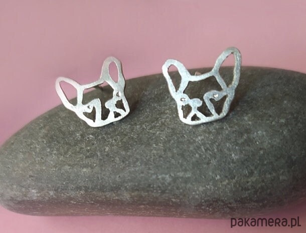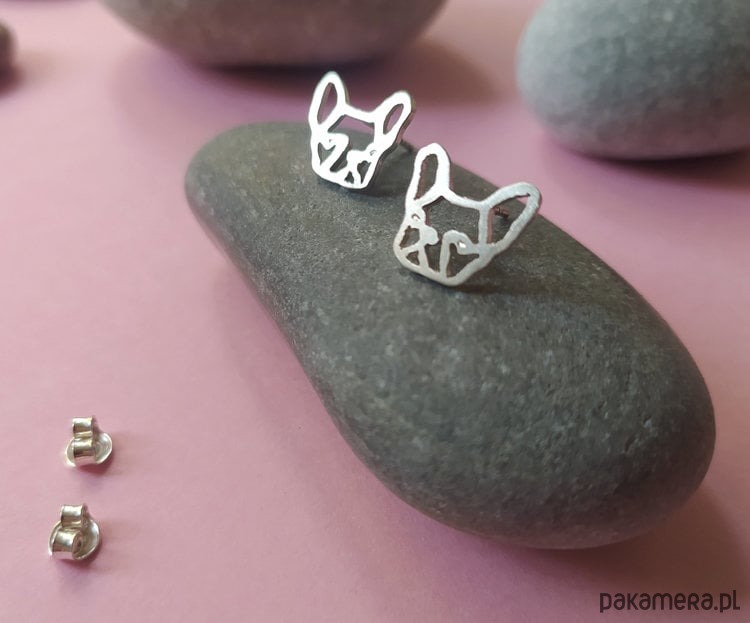 Srebrne kolczyki buldogi francuskie, srebro 925