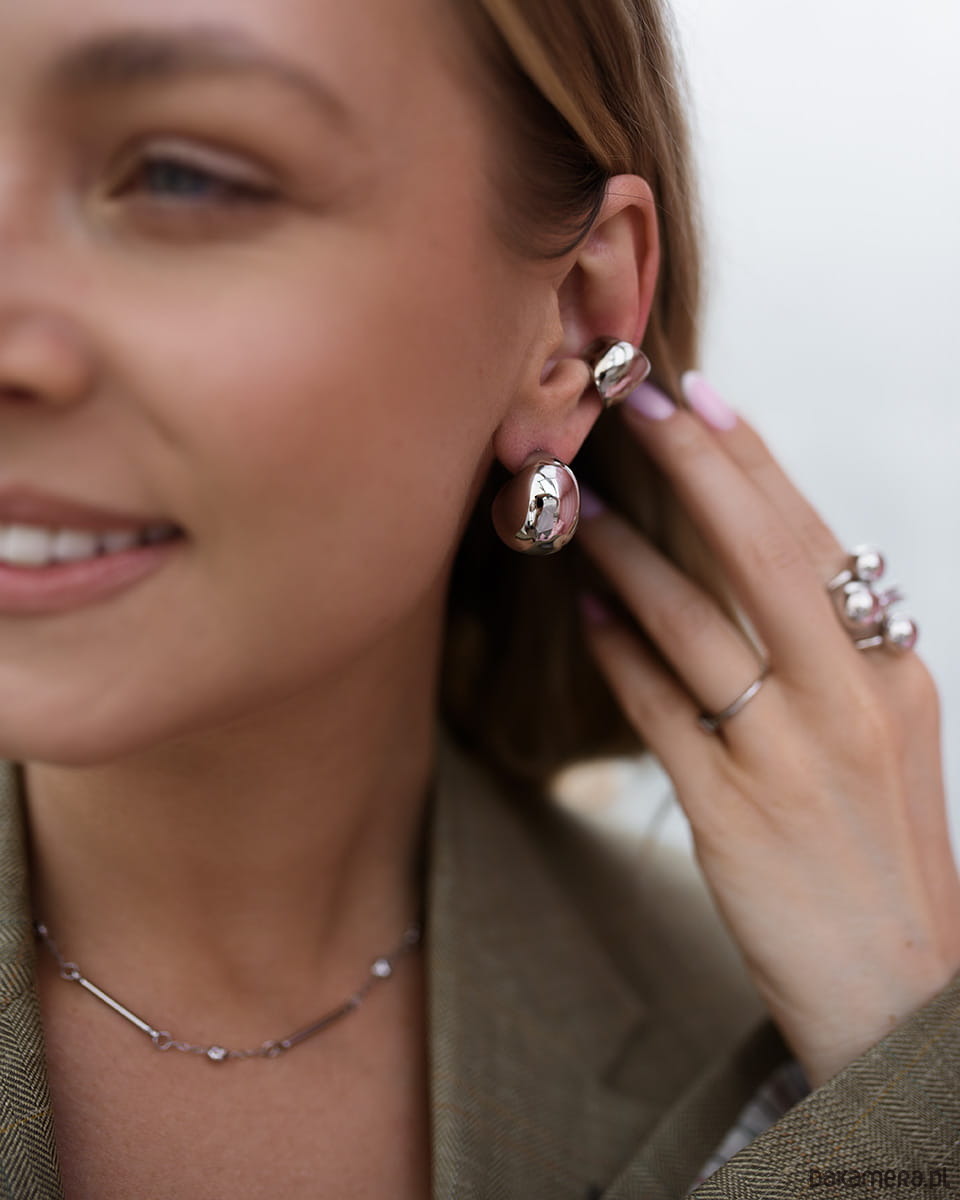 Szukasz kolczyków, które przyciągają spojrzenia, ale wciąż pozostają eleganckie i ponadczasowe? Aurelle to srebrne kolczyki półkule, które łączą nowoczesną formę z minimalistycznym stylem.Ich zaokrąglony, lustrzany kształt pięknie odbija światło i subtelnie rozświetla twarz. To modne kolczyki ze stali chirurgicznej premium, które dodają charakteru zarówno prostej stylizacji z koszulą, jak i wieczorowej sukience. Idealne do pracy, na kolację, randkę czy ważne spotkanie.Masz dość biżuterii, która po kilku założeniach traci kolor albo podrażnia uszy? Te kolczyki zostały wykonane ze stali chirurgicznej premium, dzięki czemu:- nie ciemnieją- są odporne na wodę- są hipoalergiczneMożesz nosić je cały dzień bez uczucia dyskomfortu. Są puste w środku dzięki czemu są niesamowicie lekkie i komfortowe. Nie musisz zdejmować ich na siłownię czy podczas deszczu.Wymiary: Wysokość: 2,3 cm, szerokość: 1,8 cmMateriał: stal chirurgiczna premiumWodoodporna i hipoalergiczna