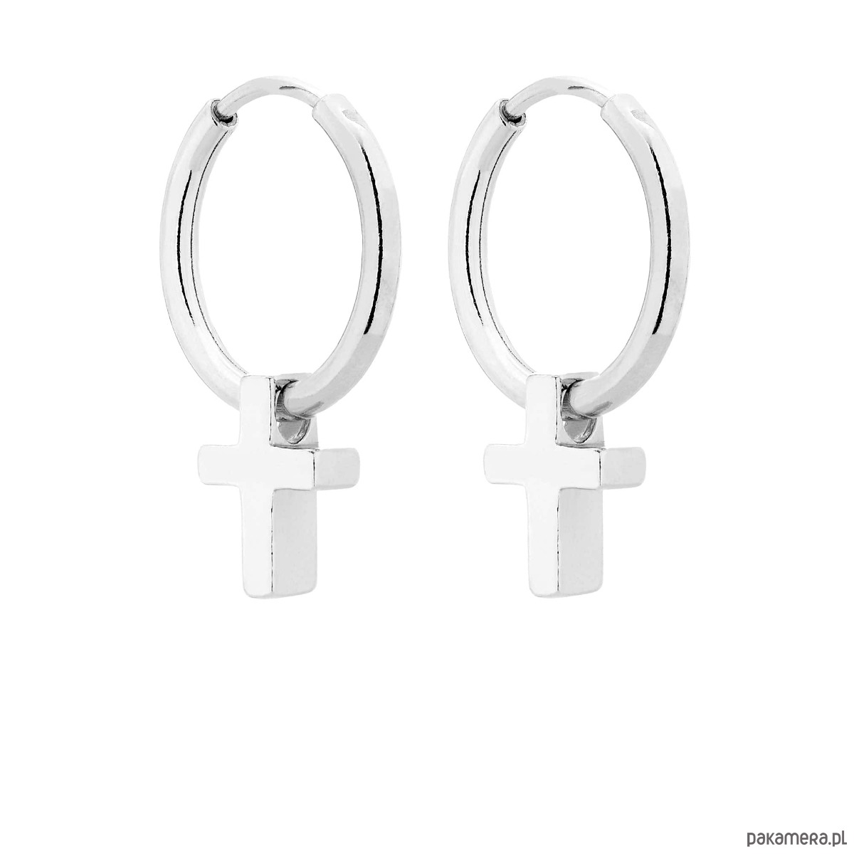 Małe srebrne kolczyki klasyczne koła zdobione krzyżykami. Całość wykonana ze srebra 925.