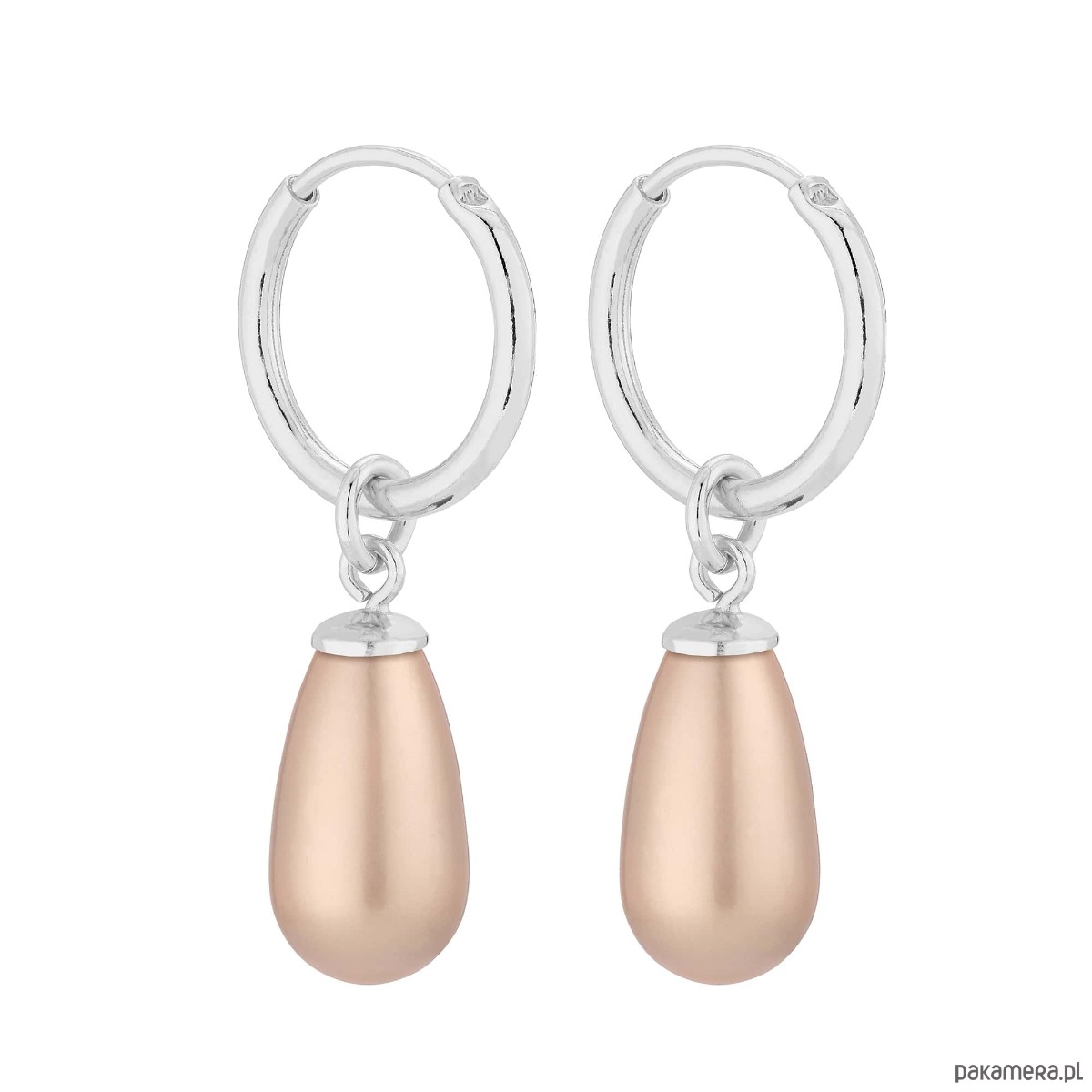 Srebrne kolczyki koła z perłą SWAROVSKI® CRYSTAL w kolorze pudrowym Powder Almond. Całość wykonana ze srebra 925.