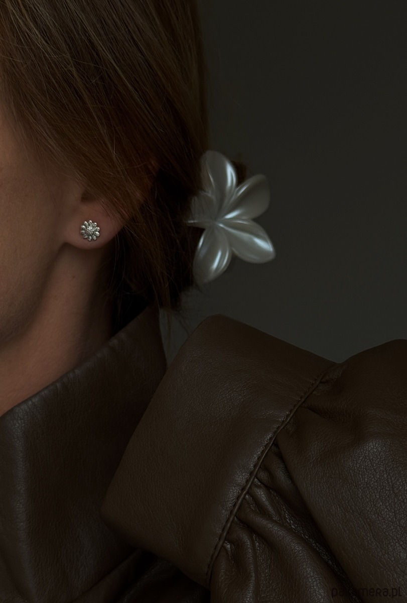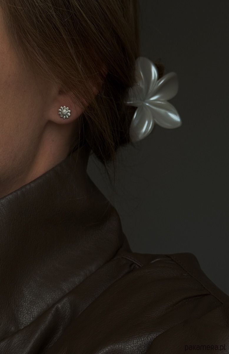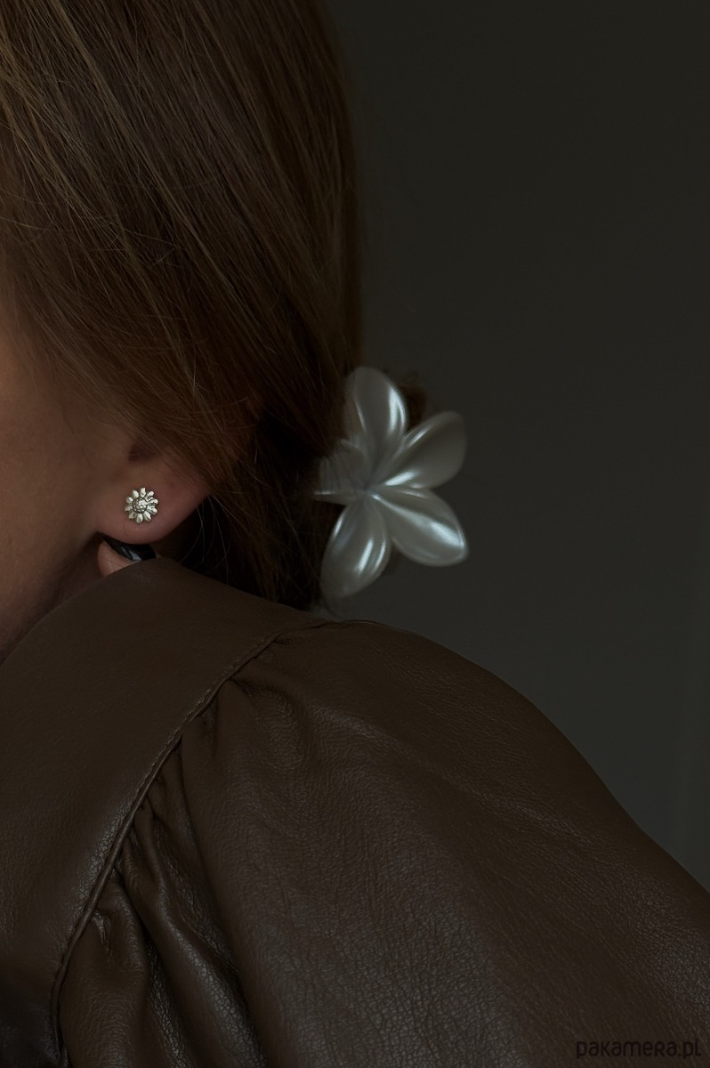 Srebrne kolczyki kwiatuszki. Całość wykonana ze srebra 925. Zapinane na sztyft. Kolczyki posiadają zapięcia (baranki).