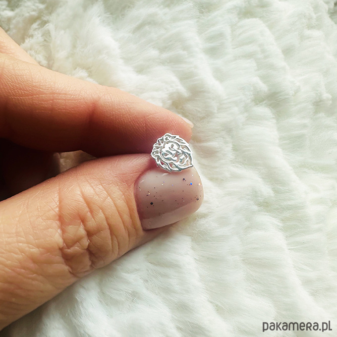 Srebrne kolczyki lwy origami, głowa lwa sztyfty