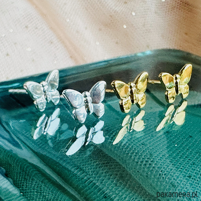 Wyrafinowane motylki kolczyki sztyfty. Będą idealne na każdą porę roku. Wykonane ze srebra