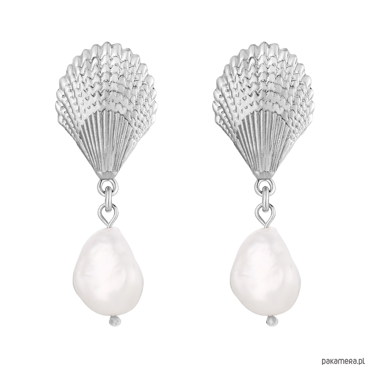 Srebrne kolczyki wykonane z muszli i naturalnych pereł słodkowodnych. Całość wykonana ze srebra 925. Zapinane na sztyfty.