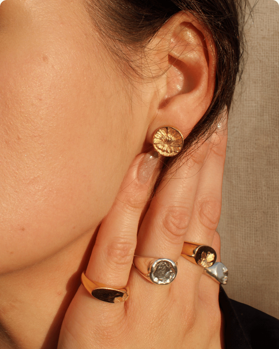 Kolczyki Peony Studs to subtelna pochwała kobiecości, którą zamknęłam w formie misternie rzeźbionych kwiatów. Choć marka Her-Ring specjalizuje się przede wszystkim w rzemieślniczym tworzeniu unikatów, jakimi są nasze flagowe sygnety damskie, kolczyki te stanowią ich idealne, delikatne dopełnienie.