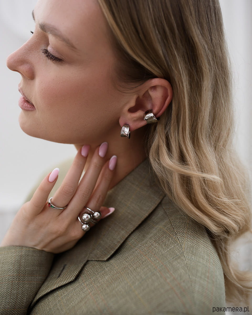 Szukasz subtelnej biżuterii, która będzie jednocześnie trwała, stylowa i bezpieczna dla Twojej skóry? Te srebrne kolczyki to esencja minimalizmu w najlepszym wydaniu. Delikatnie wygięta, opływowa forma przyciąga spojrzenia i pięknie odbija światło. Idealne do pracy, na spotkania, ale też na codzienne spacery po mieście. Ich uniwersalny design sprawia, że pasują dosłownie do wszystkiego - od koszuli po oversizowy sweter.Wykonane z wysokiej jakości stali chirurgicznej premium, która jest znana ze swojej:trwałości - nie rysuje się łatwo i nie odkształca,odporności na wodę - możesz je nosić pod prysznicem, na basenie, a nawet na plaży,hipoalergicznych właściwości - to biżuteria, która nie uczula, idealna dla kobiet z wrażliwą skórą.Wymiary:Wysokość: 1,5 cmSzerokość: 0,9 cmMateriał: stal chirurgiczna premiumWodoodporna i hipoalergicznaWaga: 5,6 g - lekkie i komfortowe przez cały dzieńTe kolczyki to idealny wybór dla siostry, przyjaciółki lub… po prostu dla siebie! Piękne opakowanie i możliwość dodania wersji prezentowej sprawiają, że wręczenie ich komuś bliskiemu to czysta przyjemność.