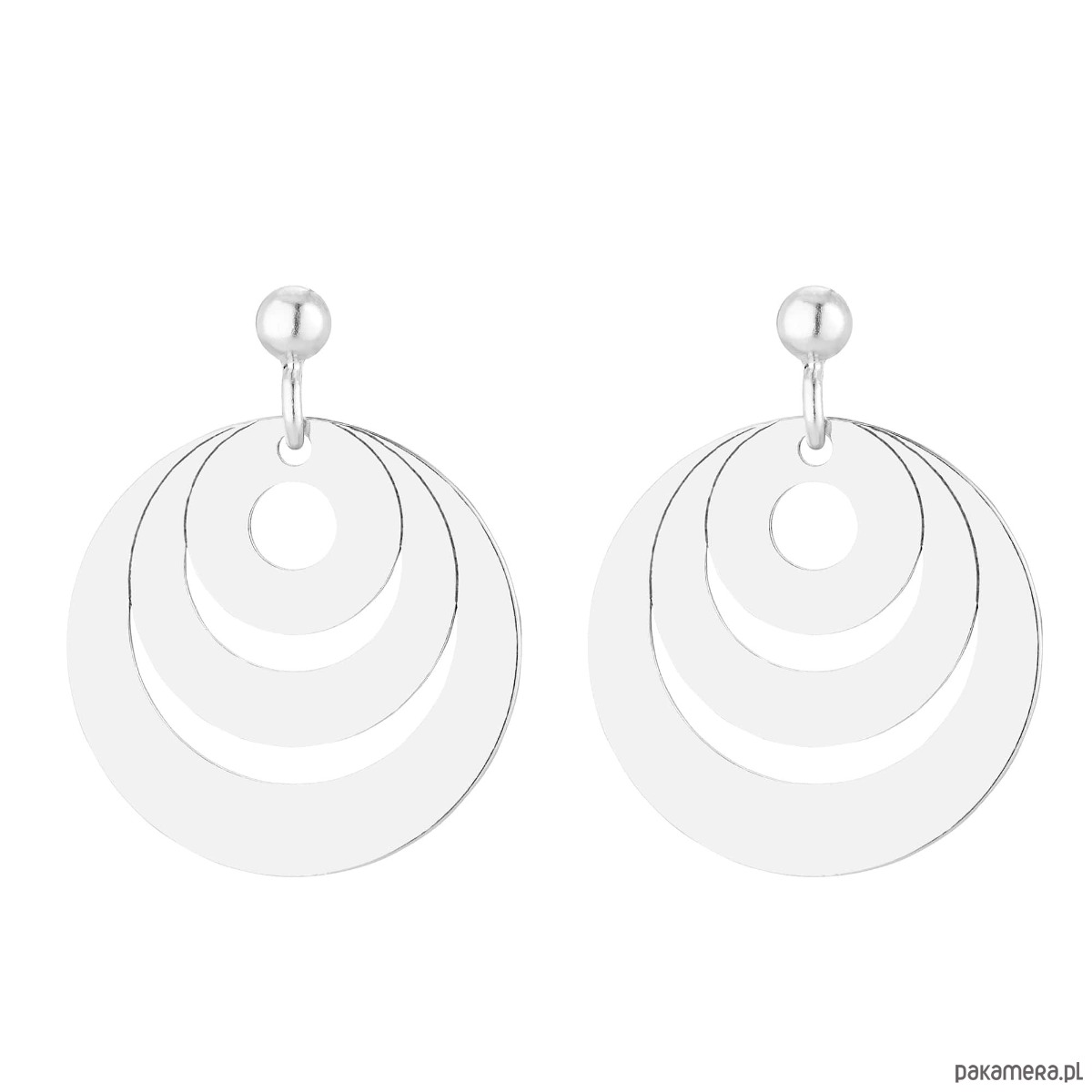Srebrne kolczyki potrójne koła. Zapinane na sztyft. Kolczyki posiadają zapięcia (baranki). Całość wykonana ze srebra 925.