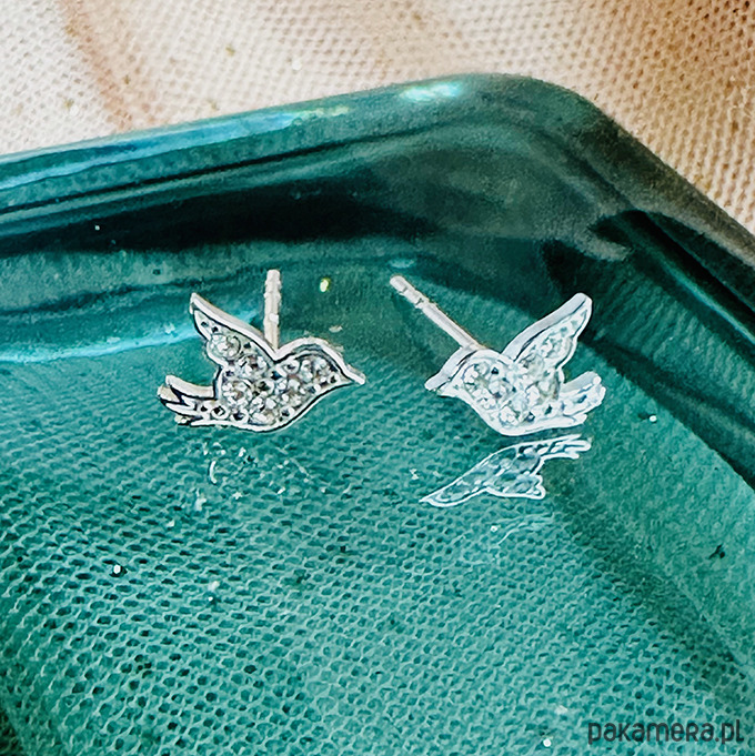 Srebrne kolczyki ptaszki, sztyfty kolibry