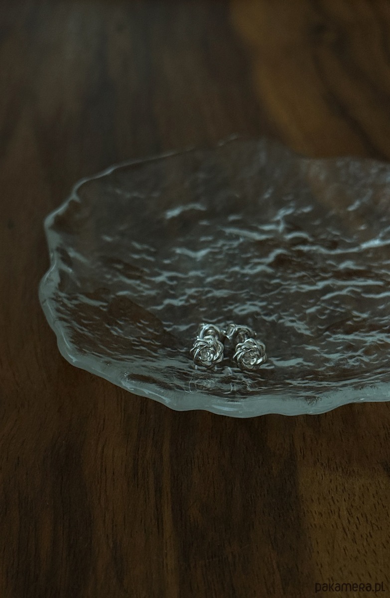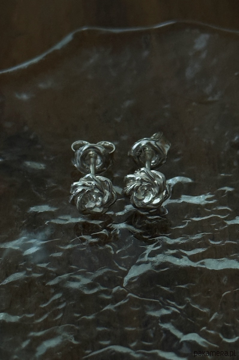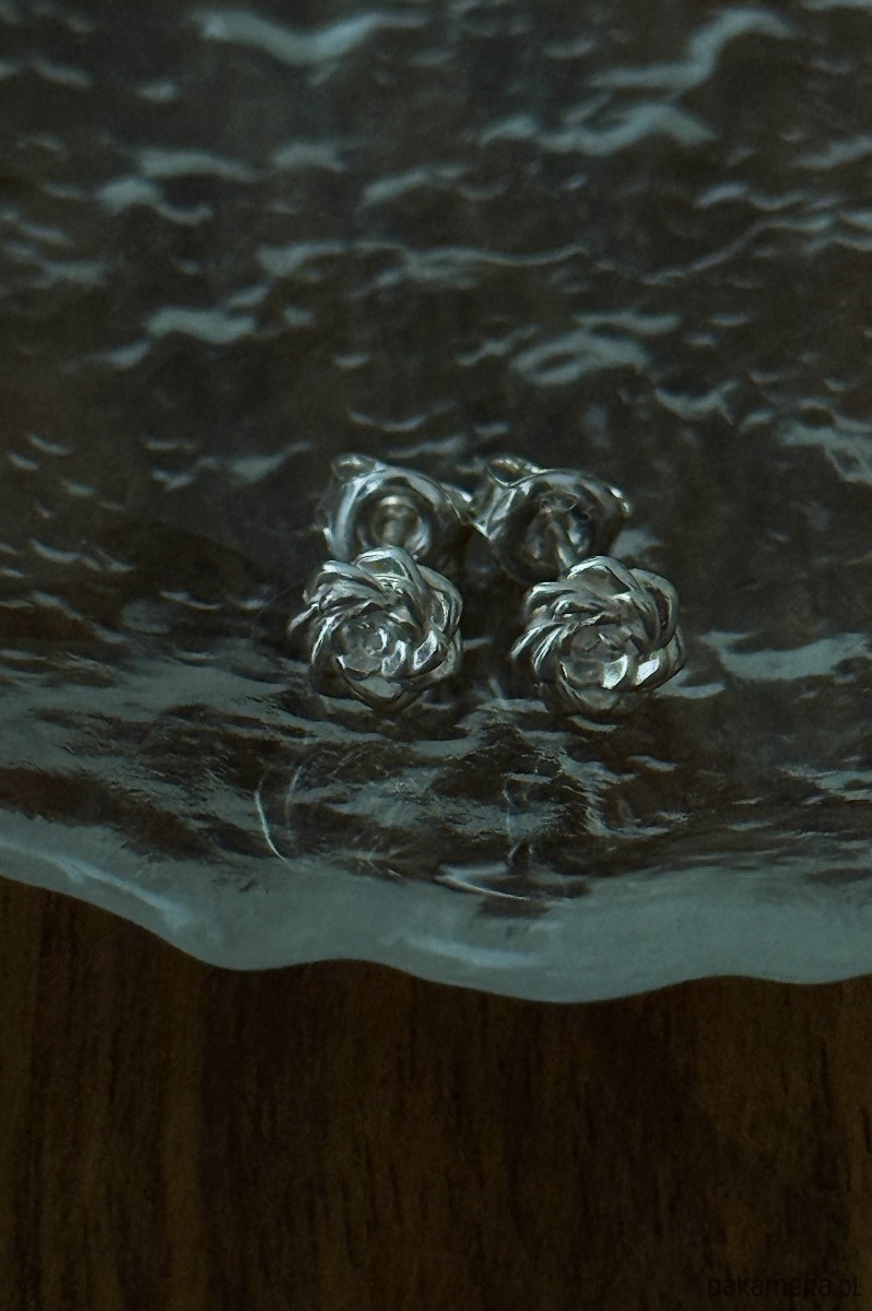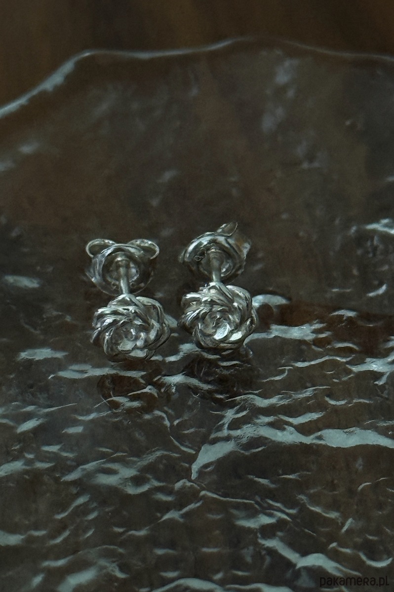 Srebrne kolczyki różyczki. Całość wykonana ze srebra 925. Zapinane na sztyft. Kolczyki posiadają zapięcia (baranki).