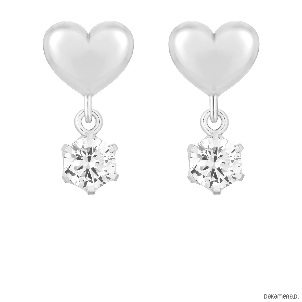 Srebrne kolczyki serca z bezbarwnymi cyrkoniami