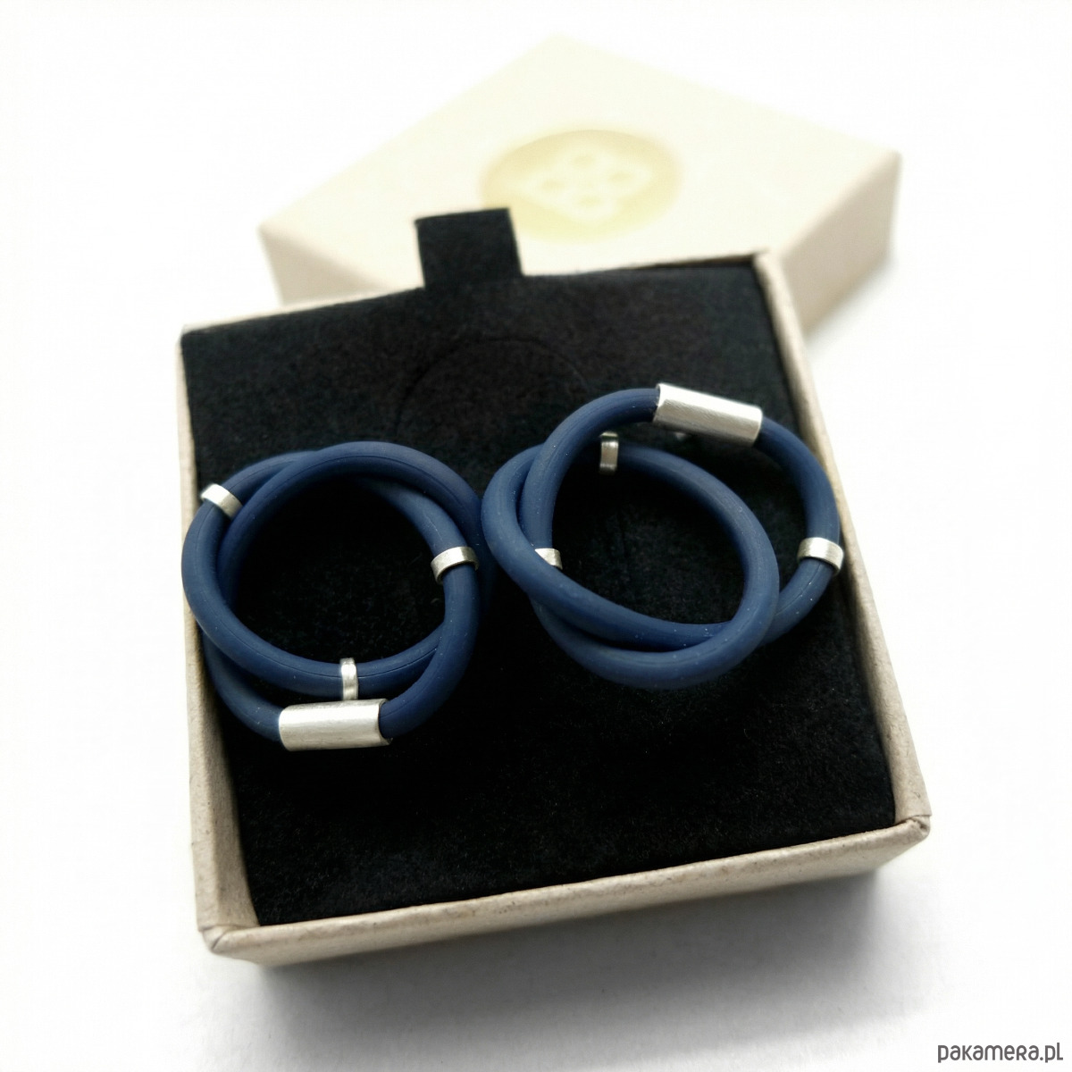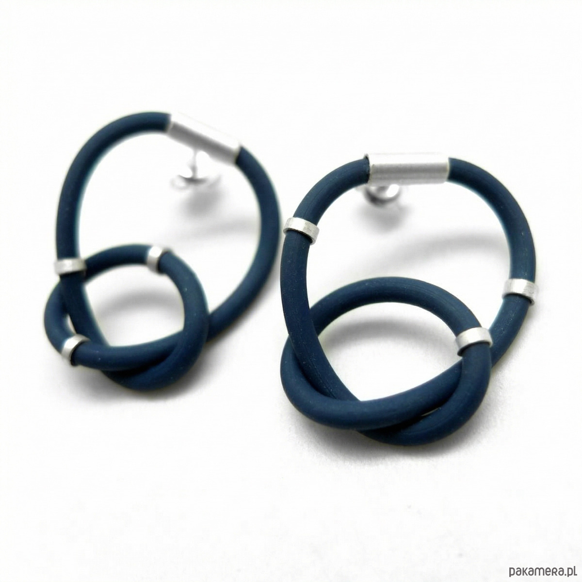 Srebrne kolczyki supły z granatowym kauczukiem