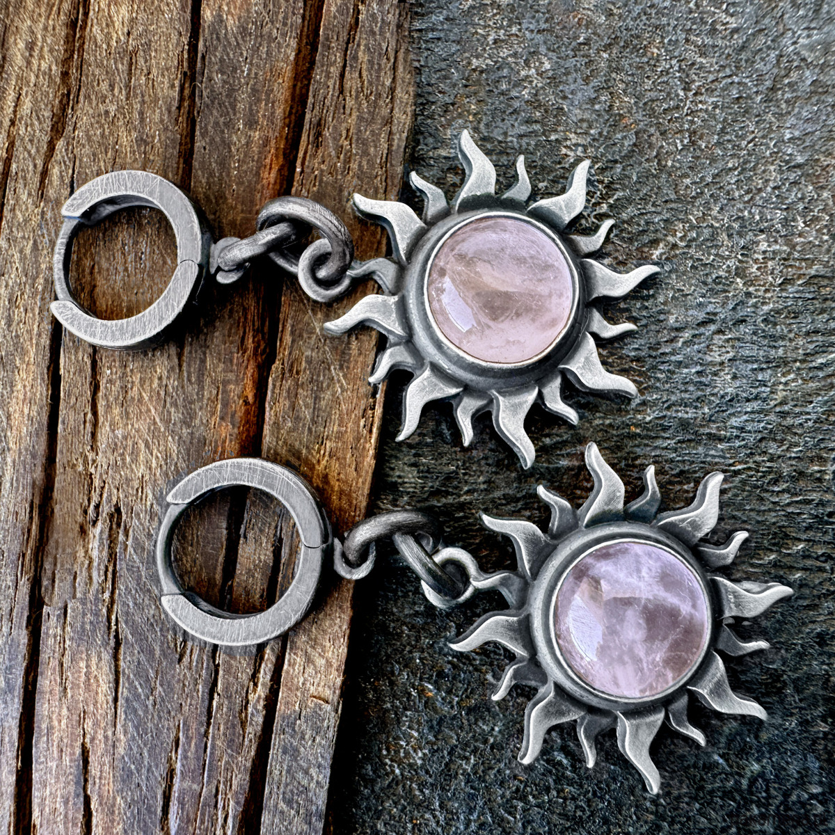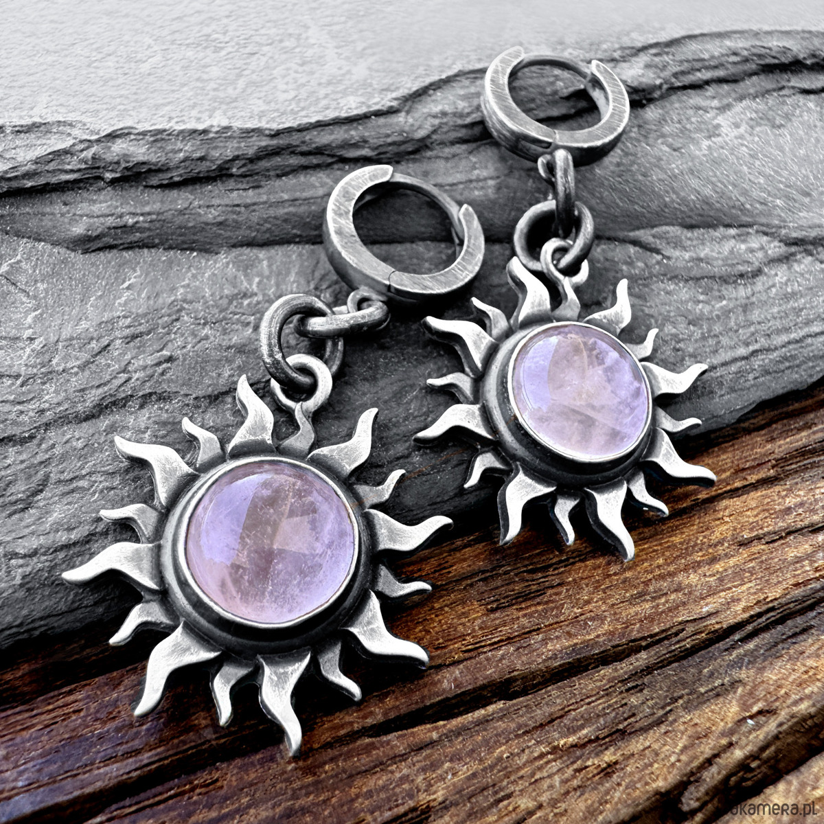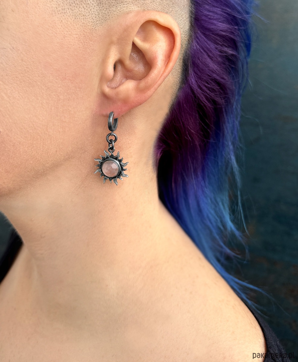 Srebrne kolczyki symbol Słońca z kwarcem różowym 10 mm